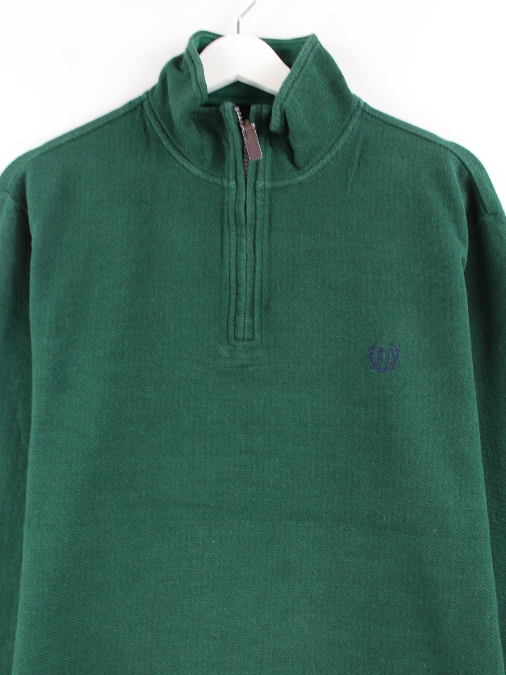 Grüner Sweater mit halbem Reißverschluß der Marke Chaps by Ralph Lauren in Größe L. Er ist aus einer Baumwollmischung gemacht und in sehr gutem Zustand im Angebot.
