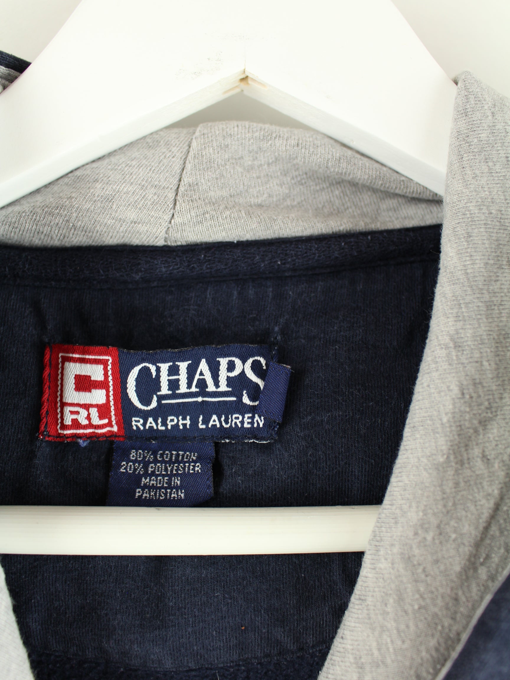 Hoodie vom Brand Chaps by Ralph Lauren in Größe XL aus Anfang der 2000'er. Er ist aus einer Baumwollmischung gefertigt und in Blau in Stock. Mit chiquem y2k Print.