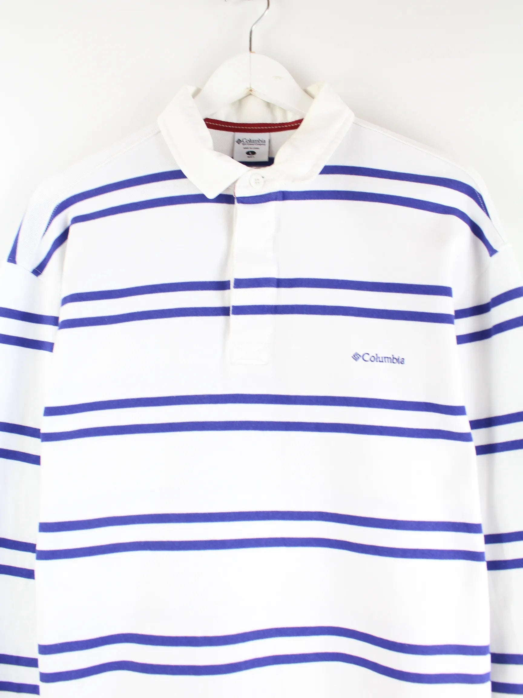 Columbia 00s Striped Langarm Polo Weiß L