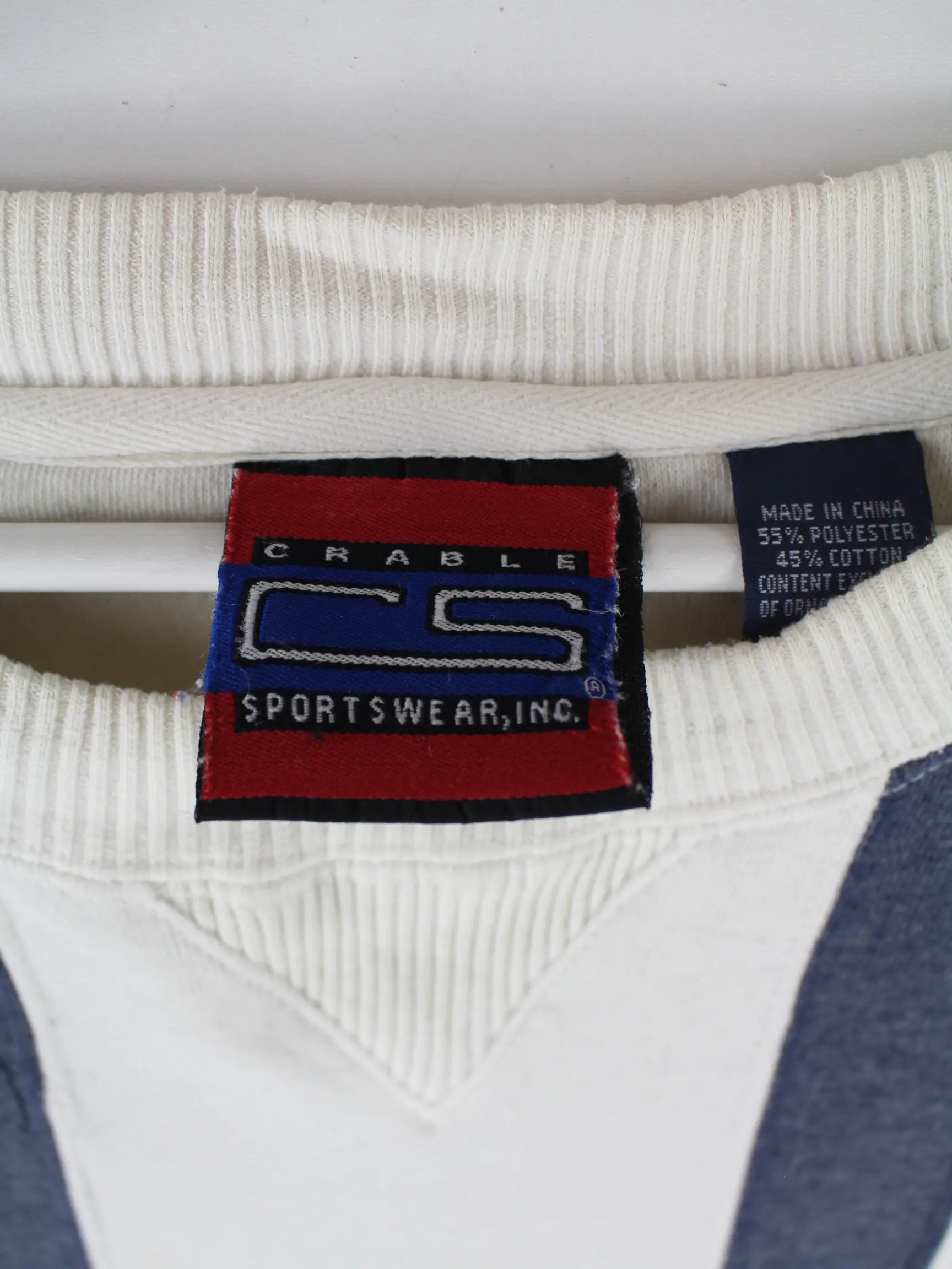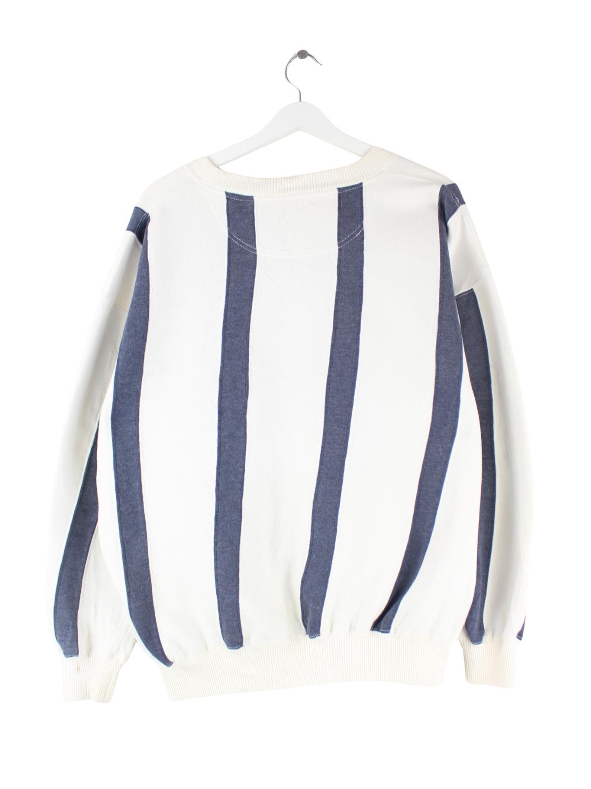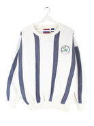 Weißer Sweater mit Stick von Crable Sportswear aus den 90'ern in Größe L. Er ist aus einer Baumwollmischung hergestellt. Den Zustand würden wir als 'In Ordnung' bezeichnen (vergl. Bilder).