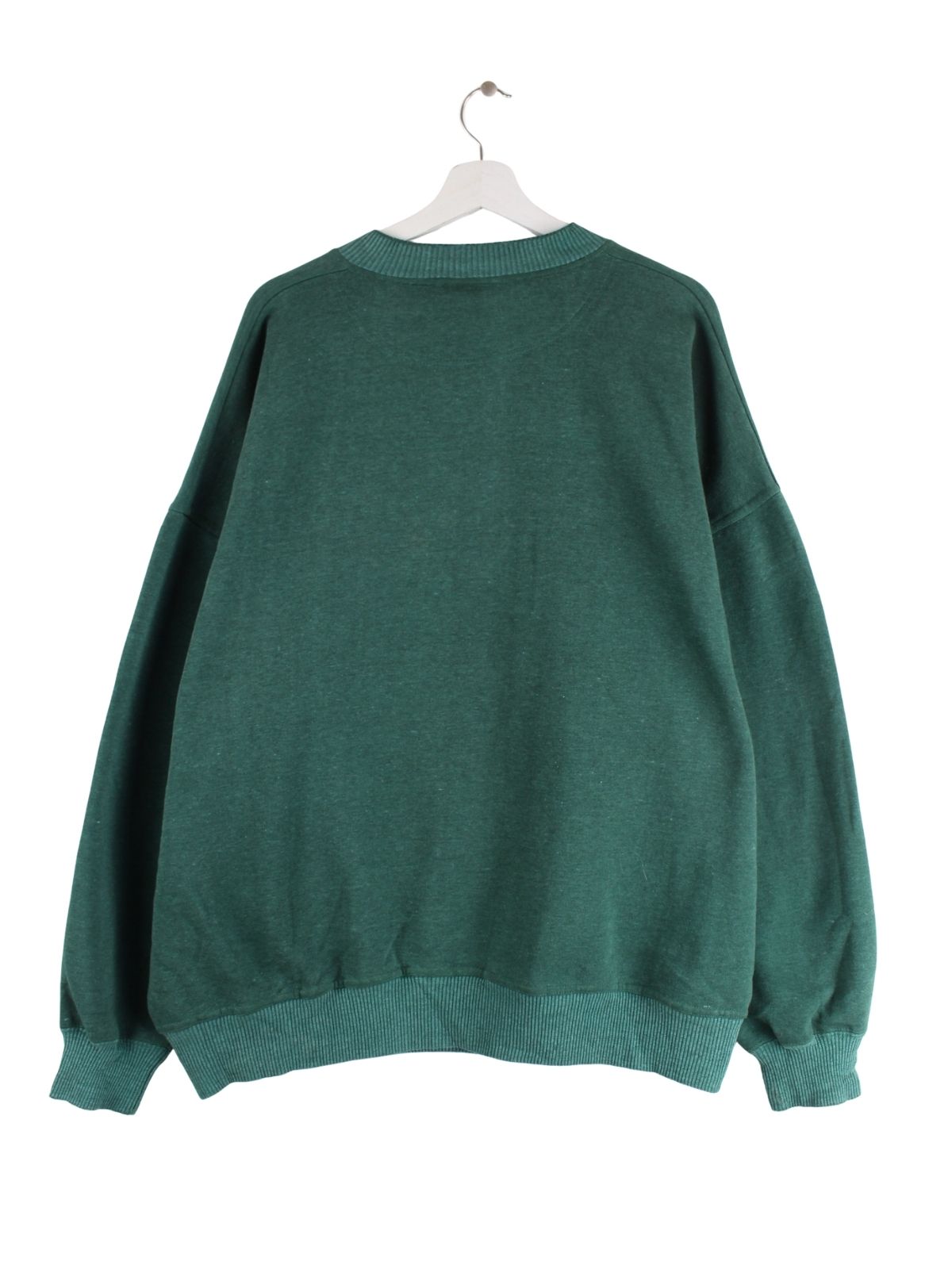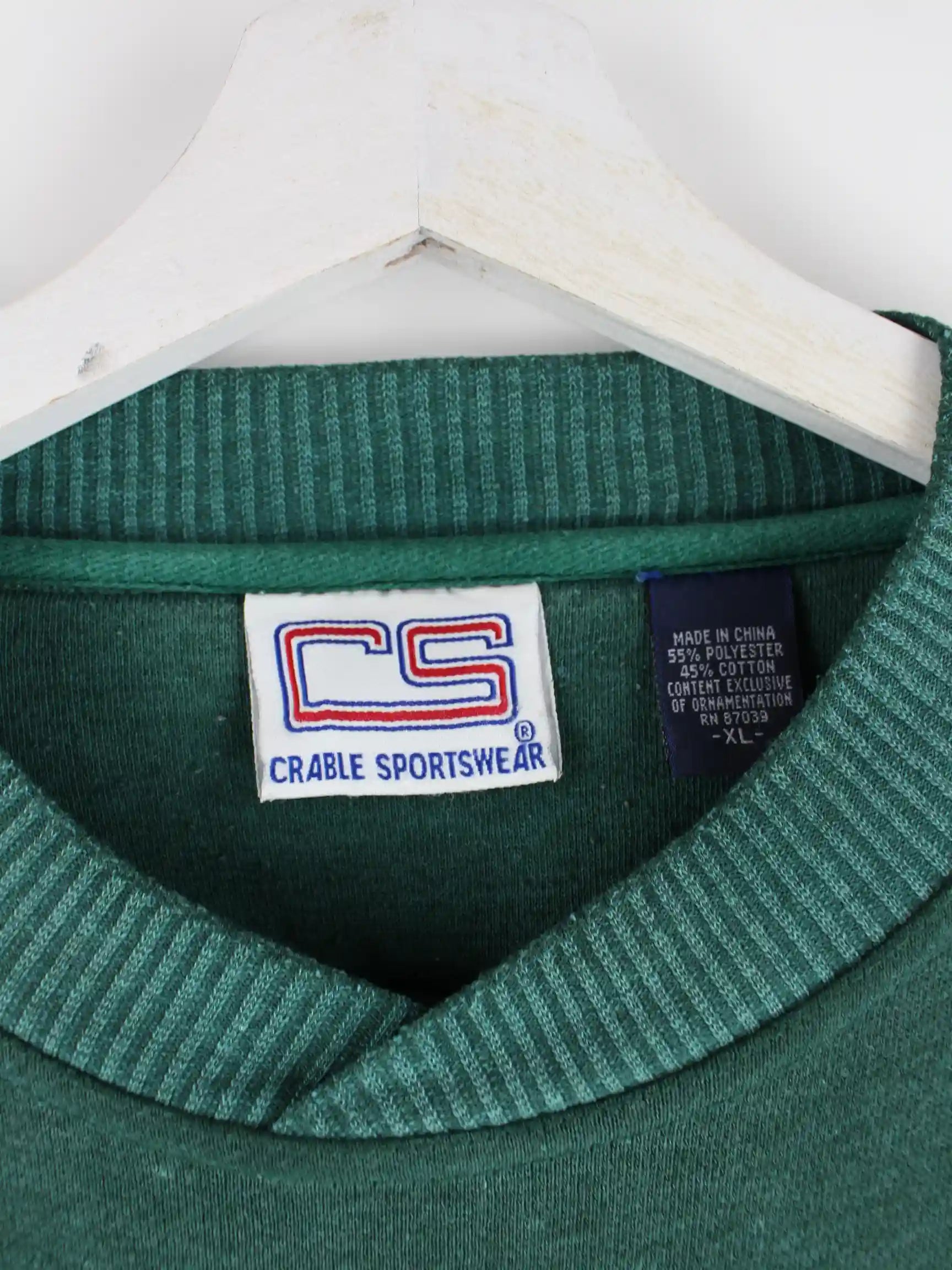 Sweater der Marke Crable Sportswear in Größe XL aus den 90'ern. Er ist aus einer Baumwollmischung gefertigt und in Grün bei uns zu bekommen.