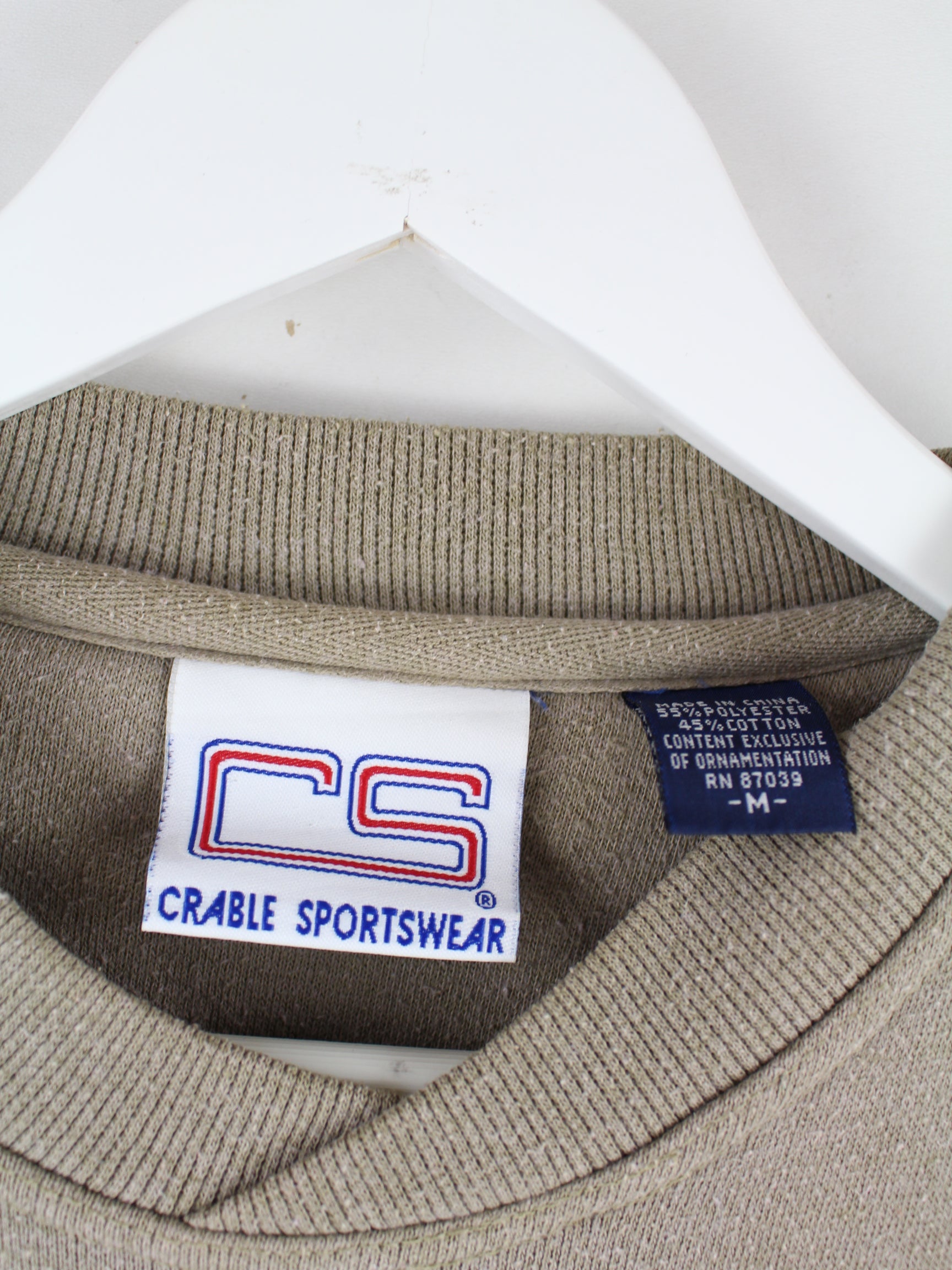 Grauer Sweater mit gestickten Motiven von Crable Sportswear aus den 90'ern in Größe M. Er ist aus einer Baumwollmischung gefertigt und in gutem Zustand auf Lager.