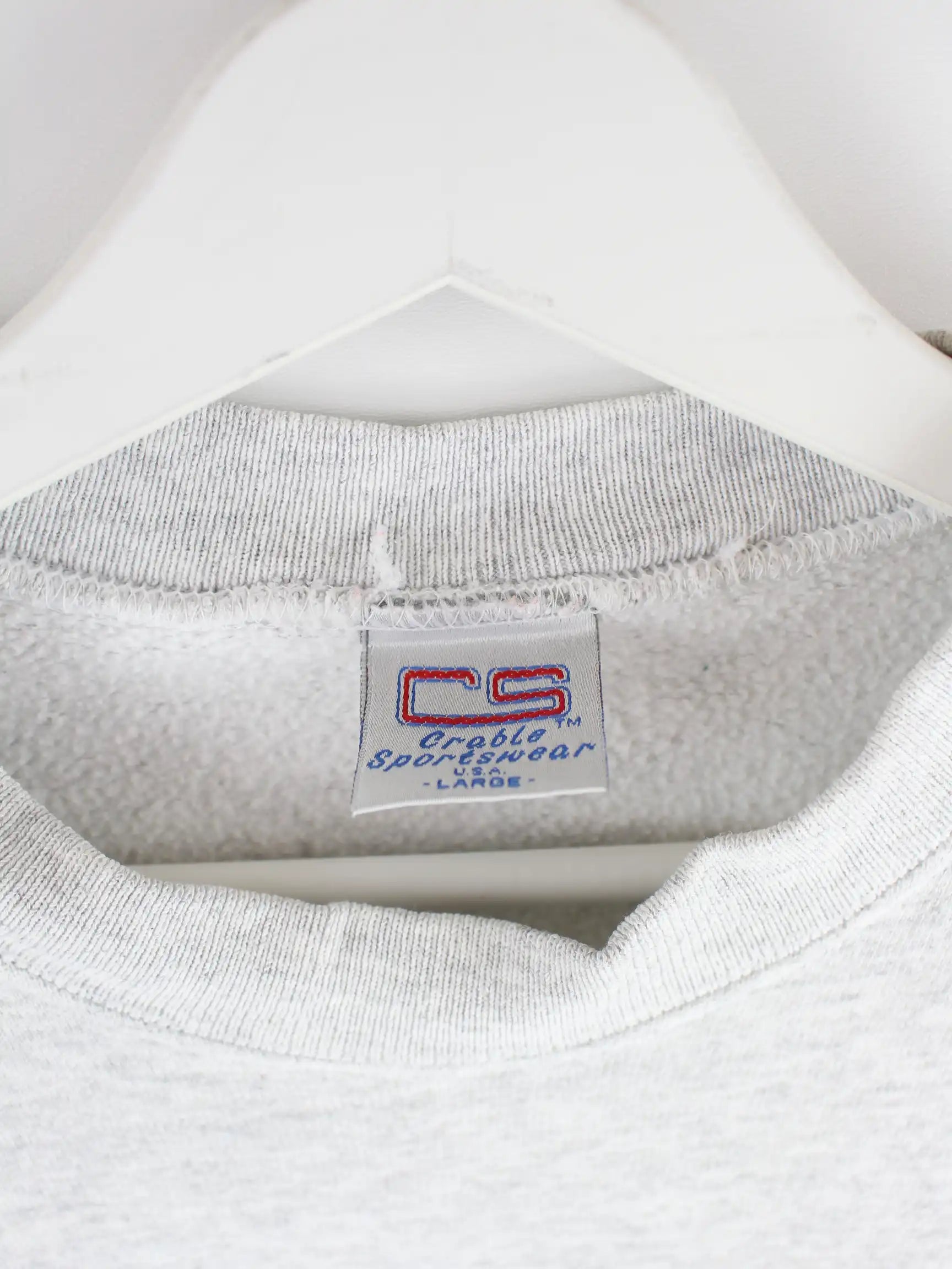 Grauer Sweater des Labels Crable Sportswear aus den 90'ern in Größe L. Er ist aus einer Baumwollmischung hergestellt und in sehr gutem Zustand zu haben.