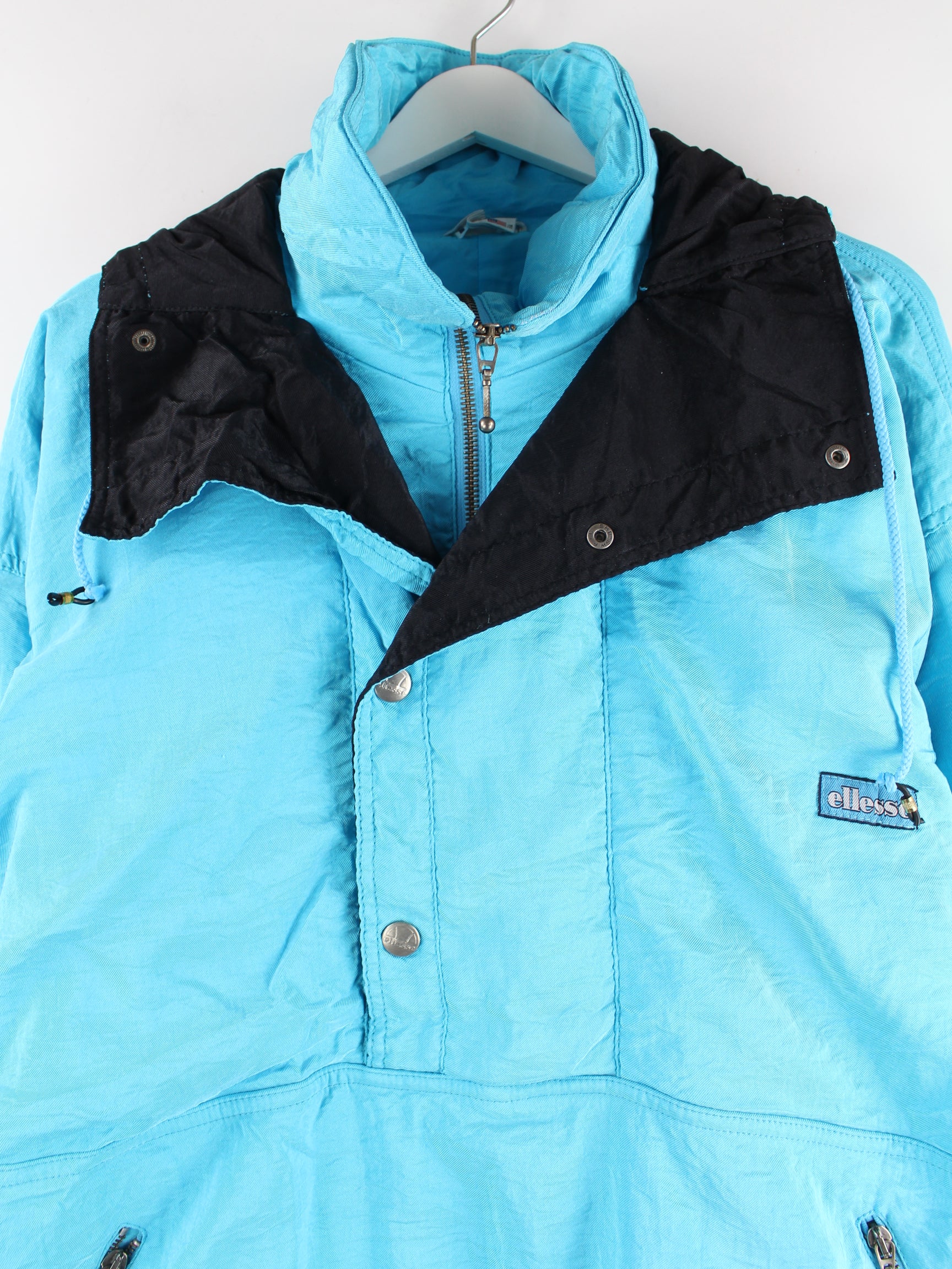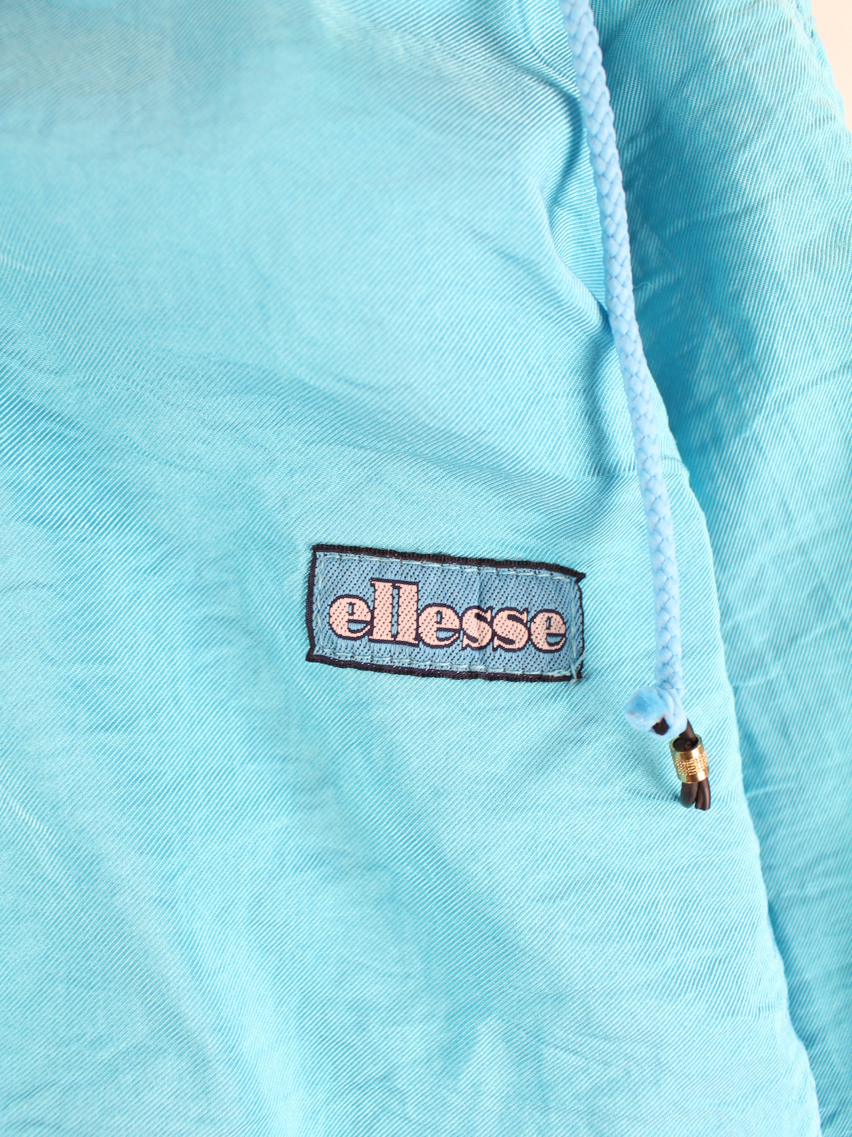 Türkisfarbene Jacke vom Label Ellesse aus den 80'ern in Größe L. Sie ist aus Synthetik gefertigt und in gutem Zustand vorrätig.