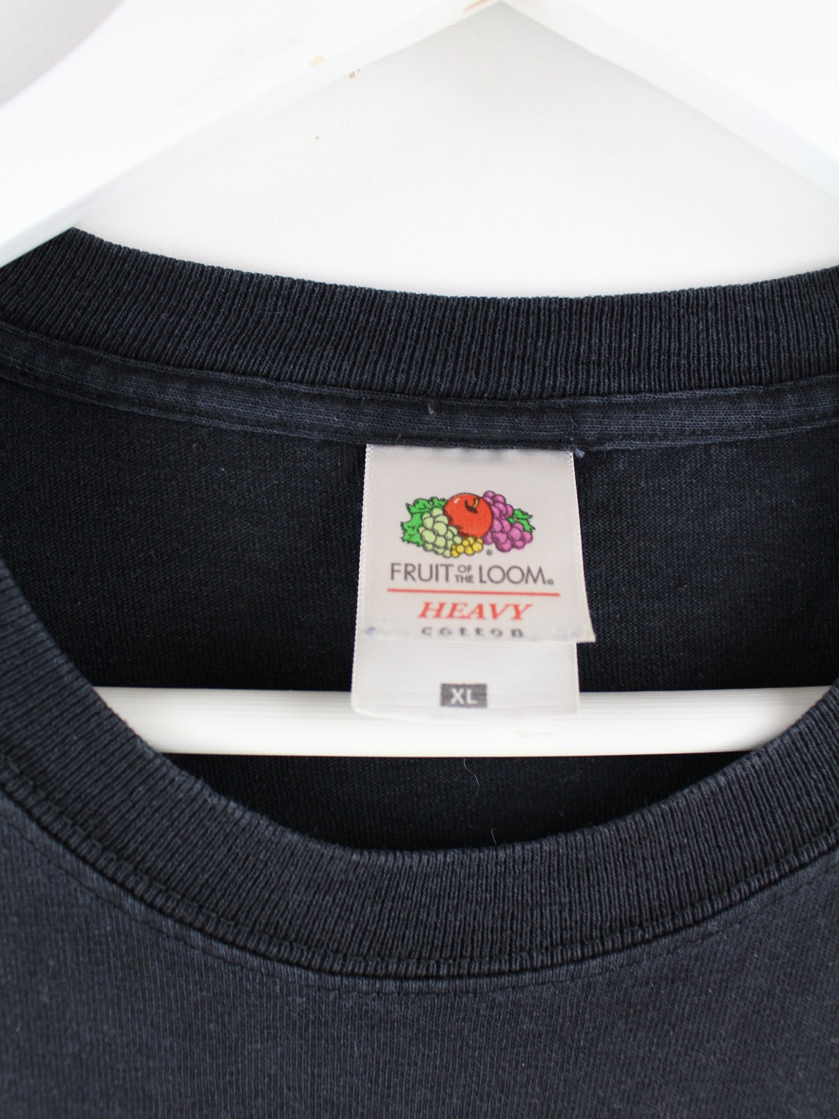 T-Shirt der Brand Fruit of the Loom in Größe XL aus Anfang der 2000'er. Es ist aus Baumwolle und in Schwarz bei uns vorrätig.