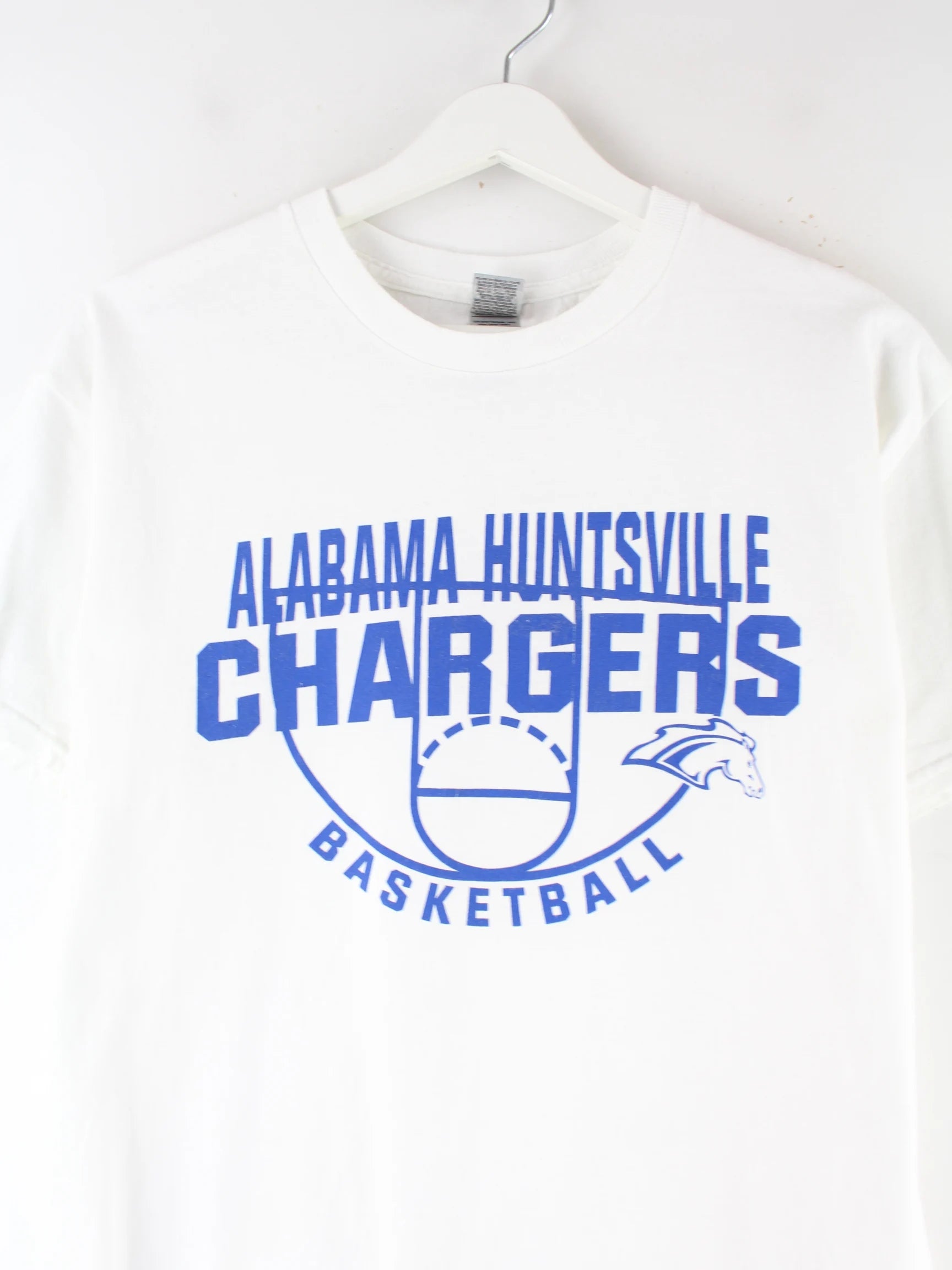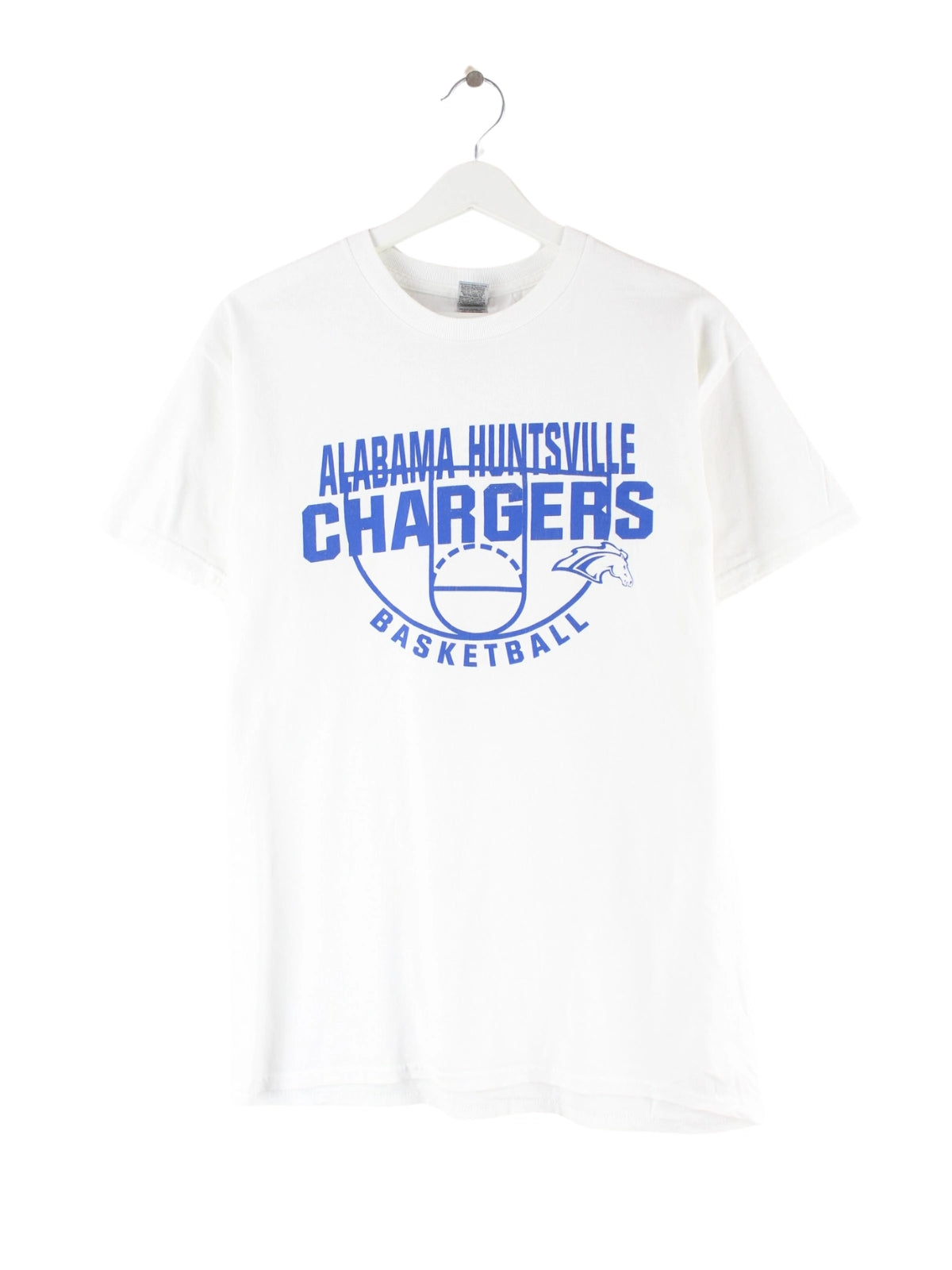 Weißes T-Shirt vom Brand Gildan in Größe M. Es ist aus Baumwolle hergestellt und in sehr gutem Zustand vorrätig. Mit schickem Alabama Print.