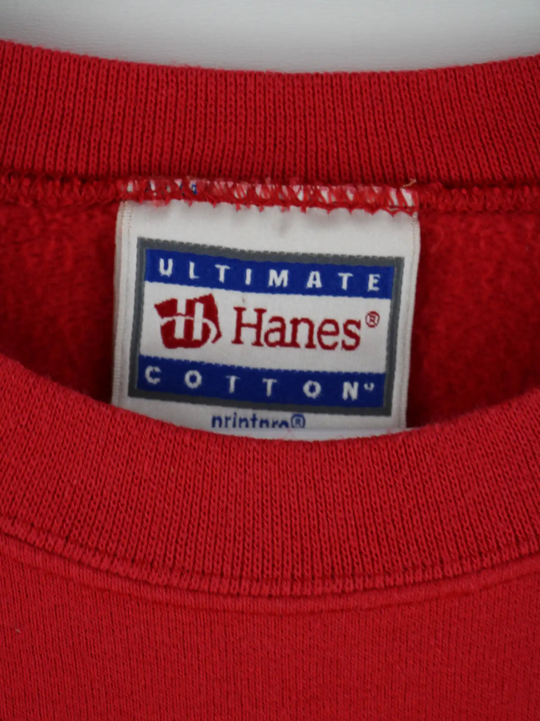 Sweater vom Brand Hanes in Größe XL. Er ist aus einer Baumwollmischung hergestellt und in Rot auf Lager. Mit schickem Carneval Print.