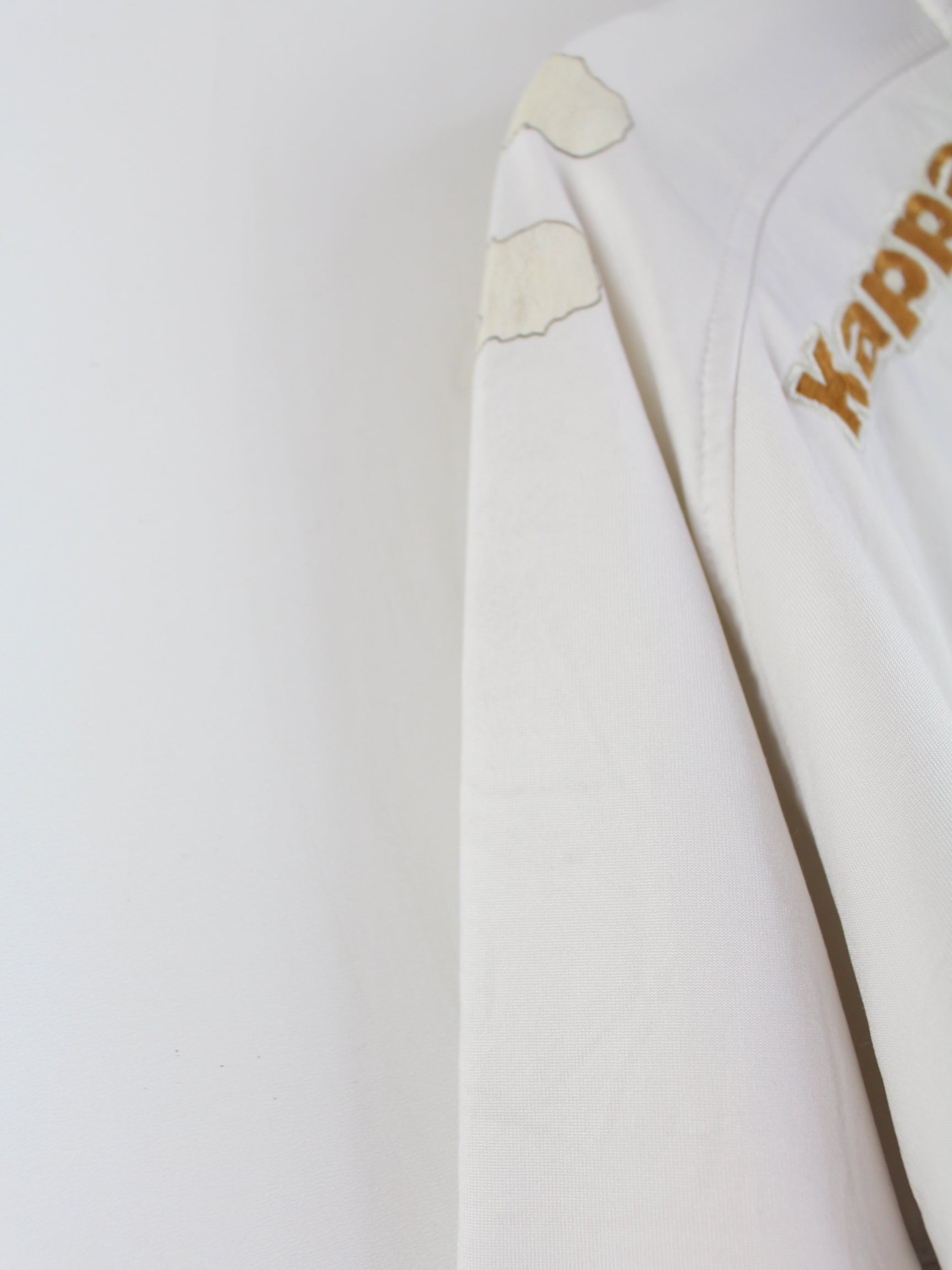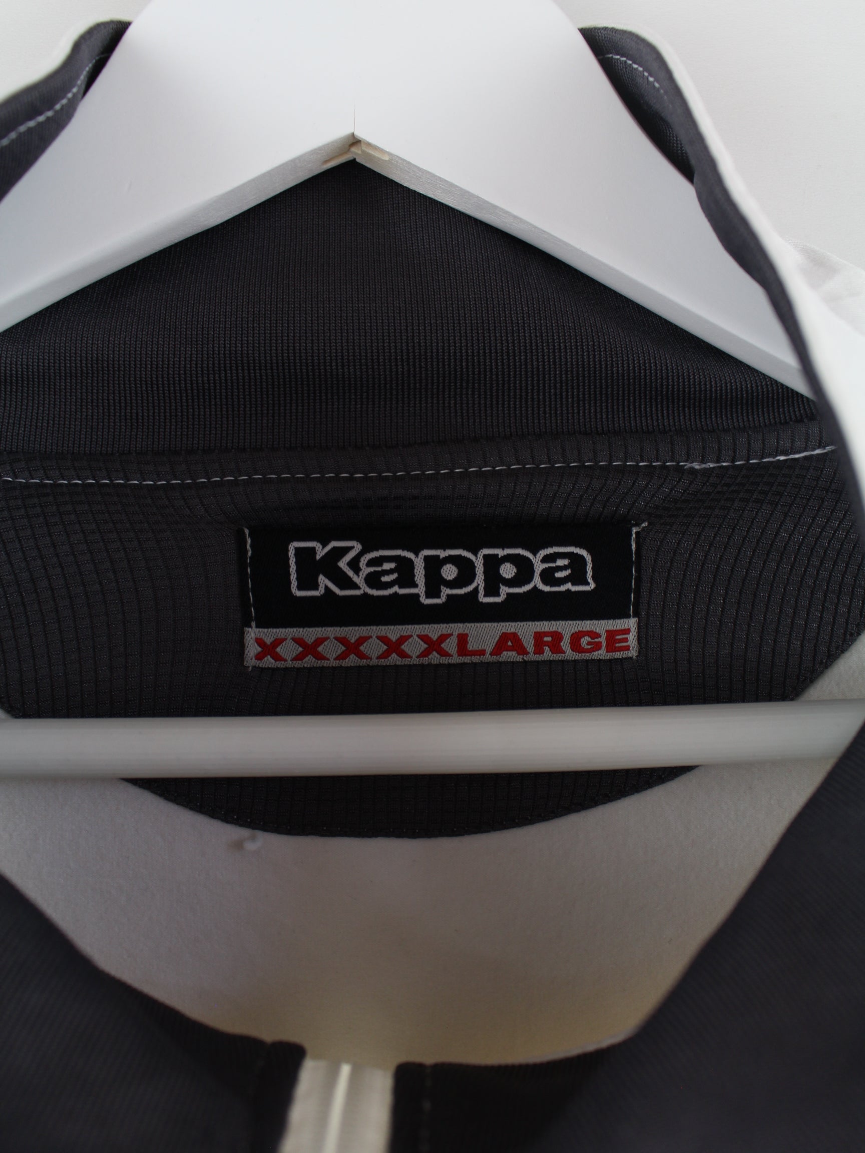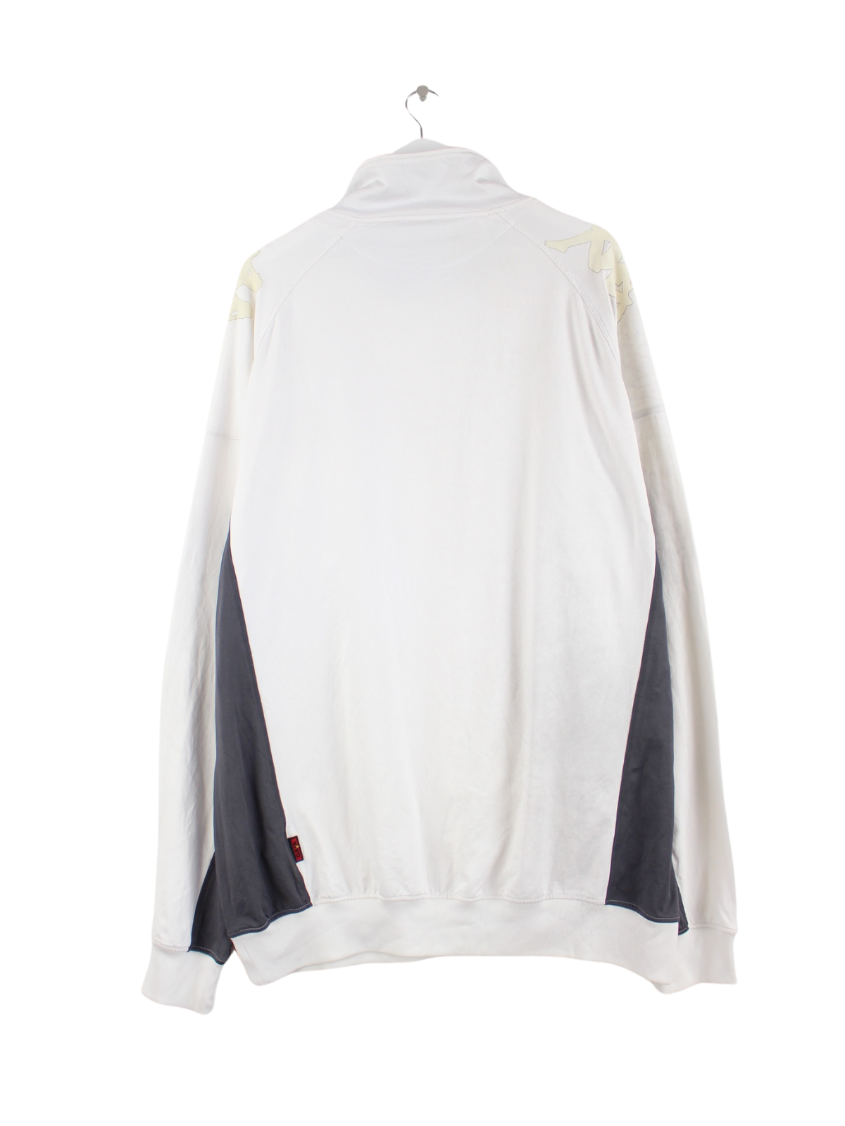 Weiße Trainingsjacke von Kappa in Größe 5XL. Sie ist aus Synthetik hergestellt. Den Zustand würden wir als 'In Ordnung' bezeichnen (vergl. Bilder).