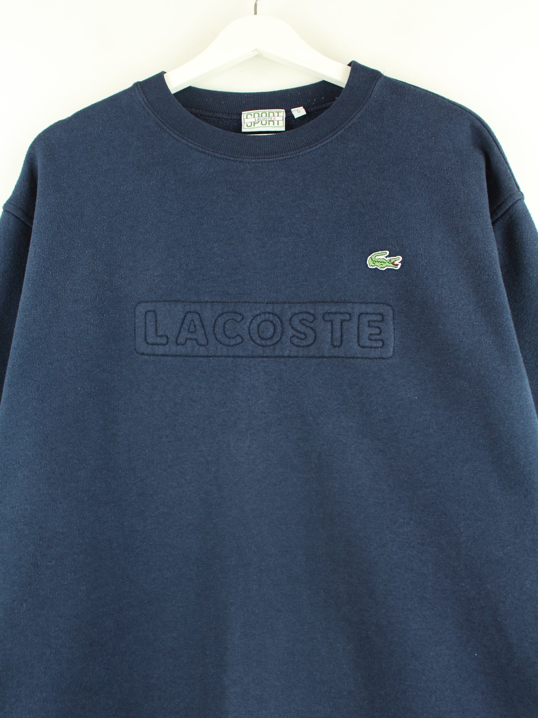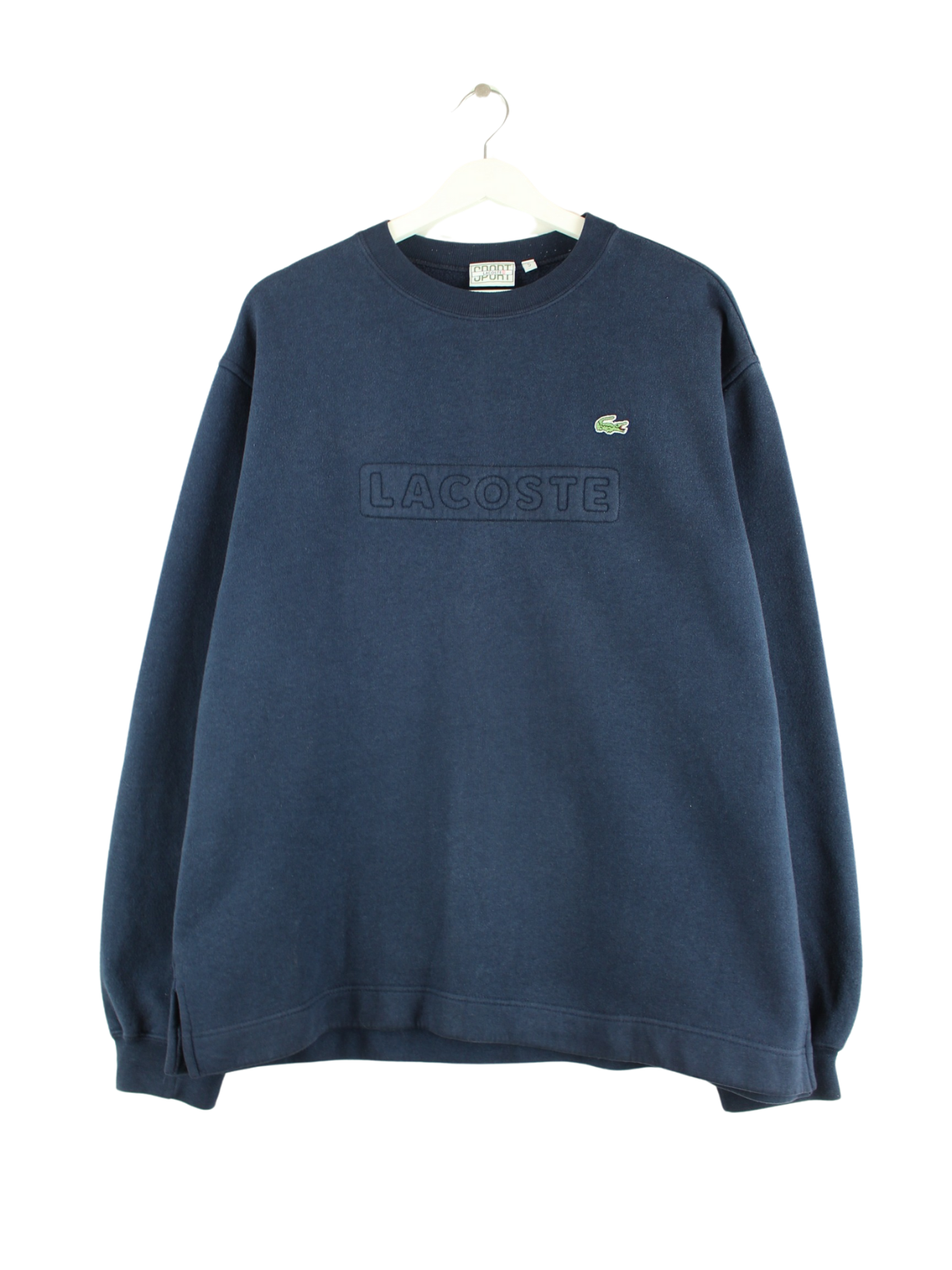 Blauer Sweater mit Stick aus dem Hause Lacoste aus Anfang der 2000'er in Größe L. Er ist aus einer Baumwollmischung produziert und in sehr gutem Zustand zu bekommen.