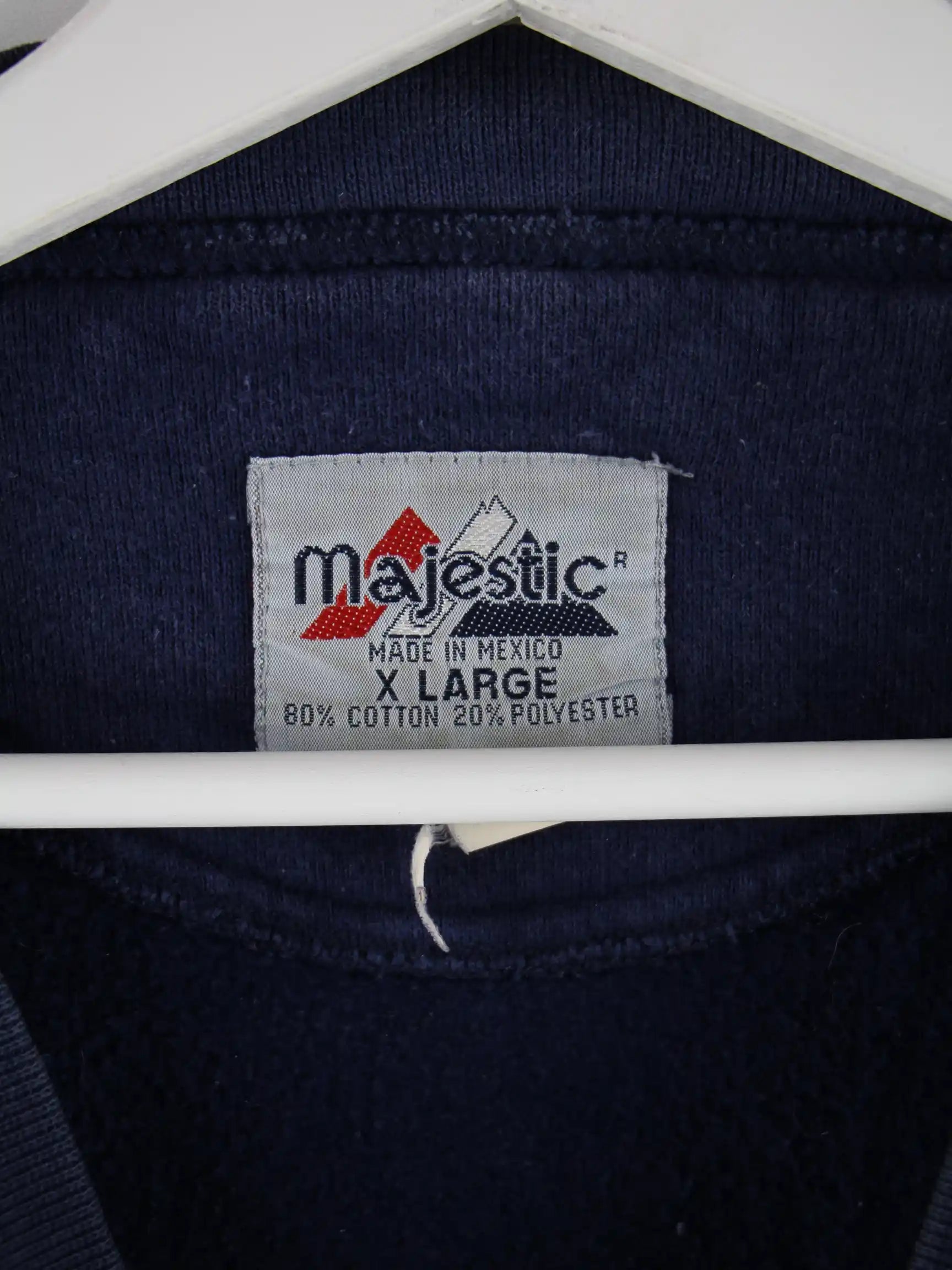 Blauer Sweater vom Label Majestic aus den 90'ern in Größe XL. Er ist aus einer Baumwollmischung gefertigt. Den Zustand würden wir als 'In Ordnung' bezeichnen (vergl. Bilder).