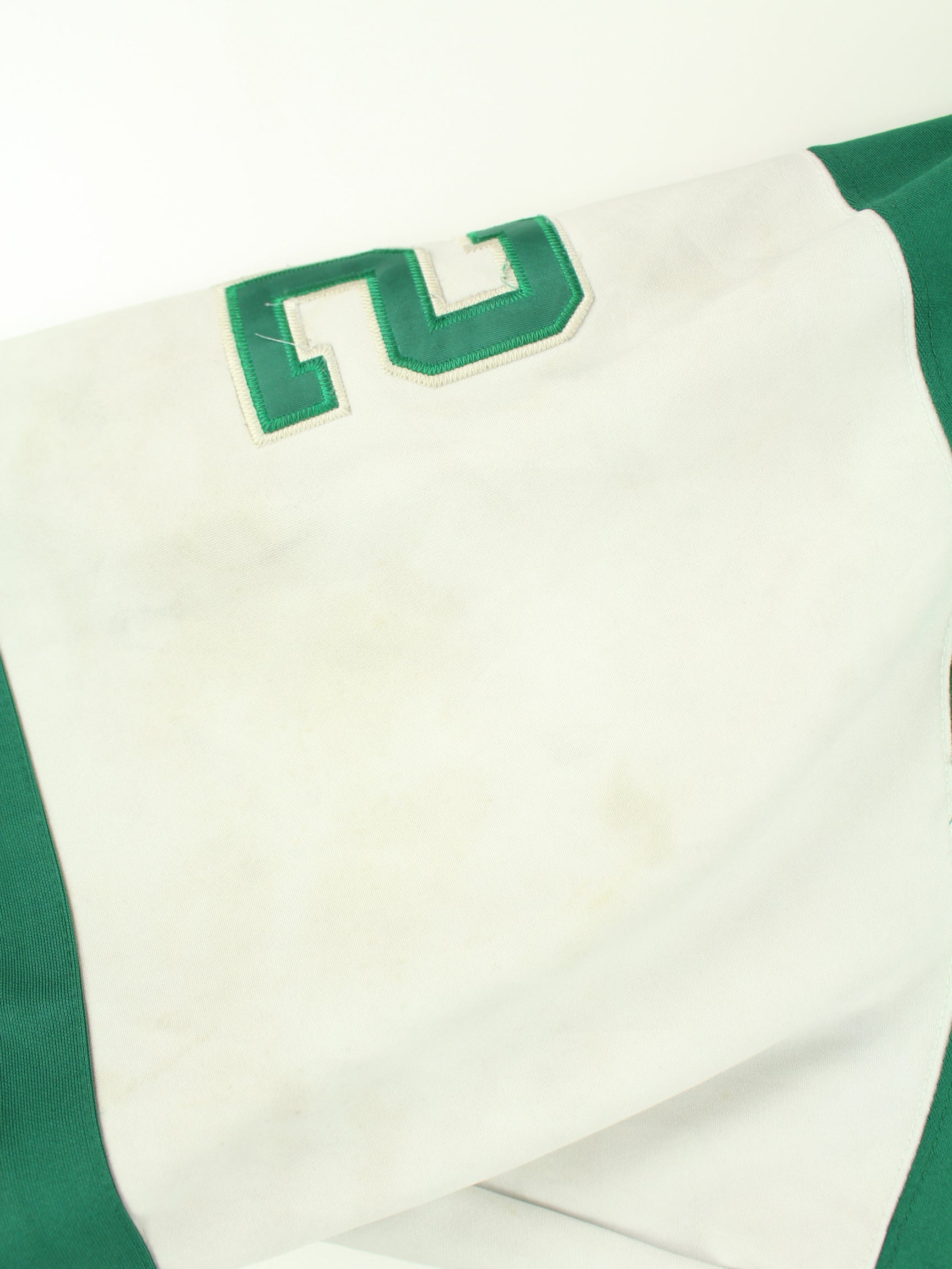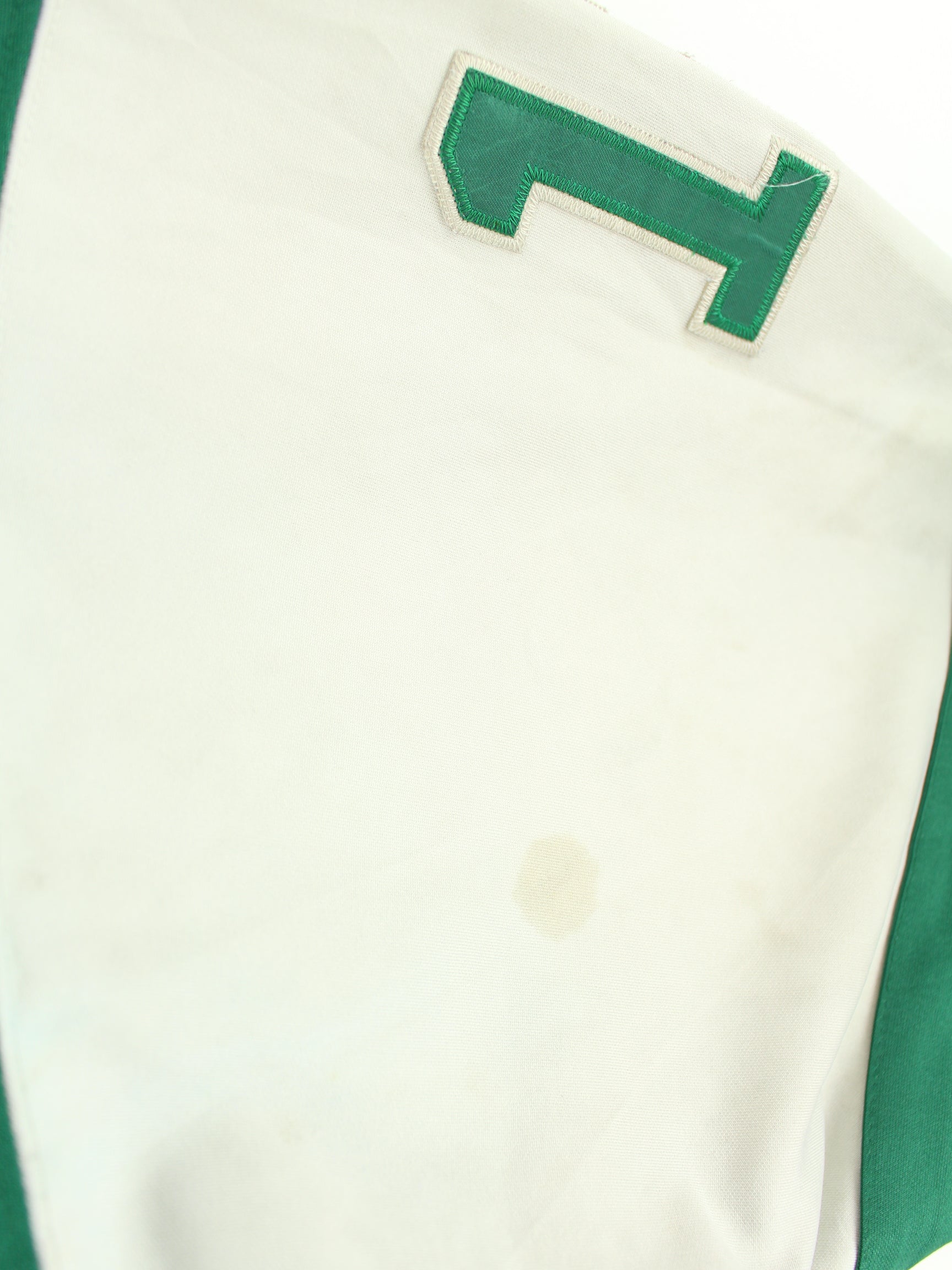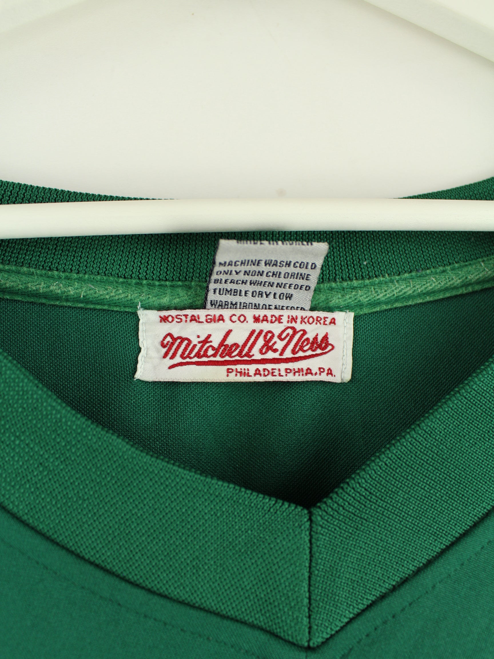 Grüner Jersey des Labels Mitchell & Ness aus den 90'ern in Größe 4XL. Es ist aus Synthetik gefertigt. Den Zustand würden wir als 'In Ordnung' bezeichnen (vergl. Bilder).