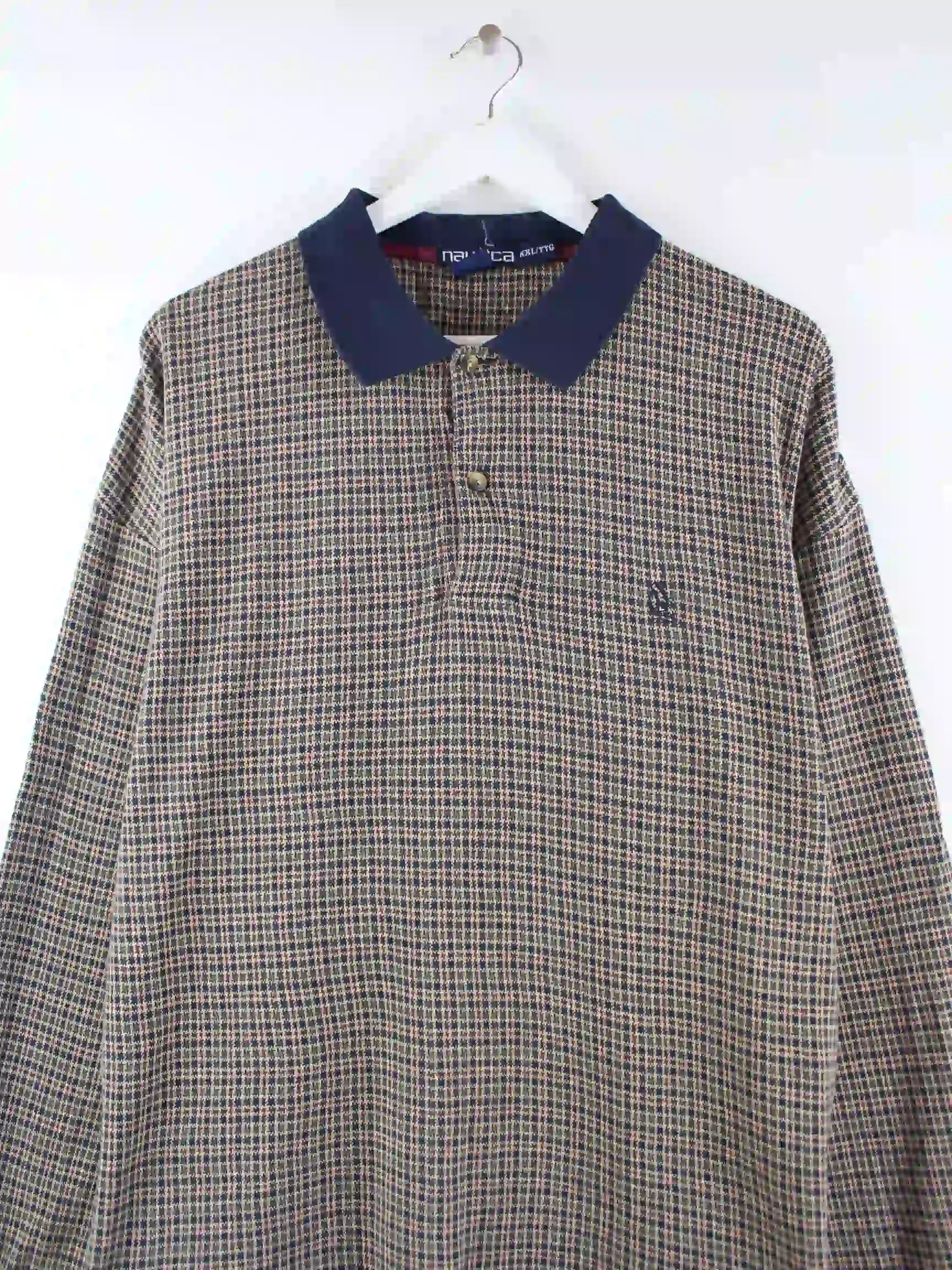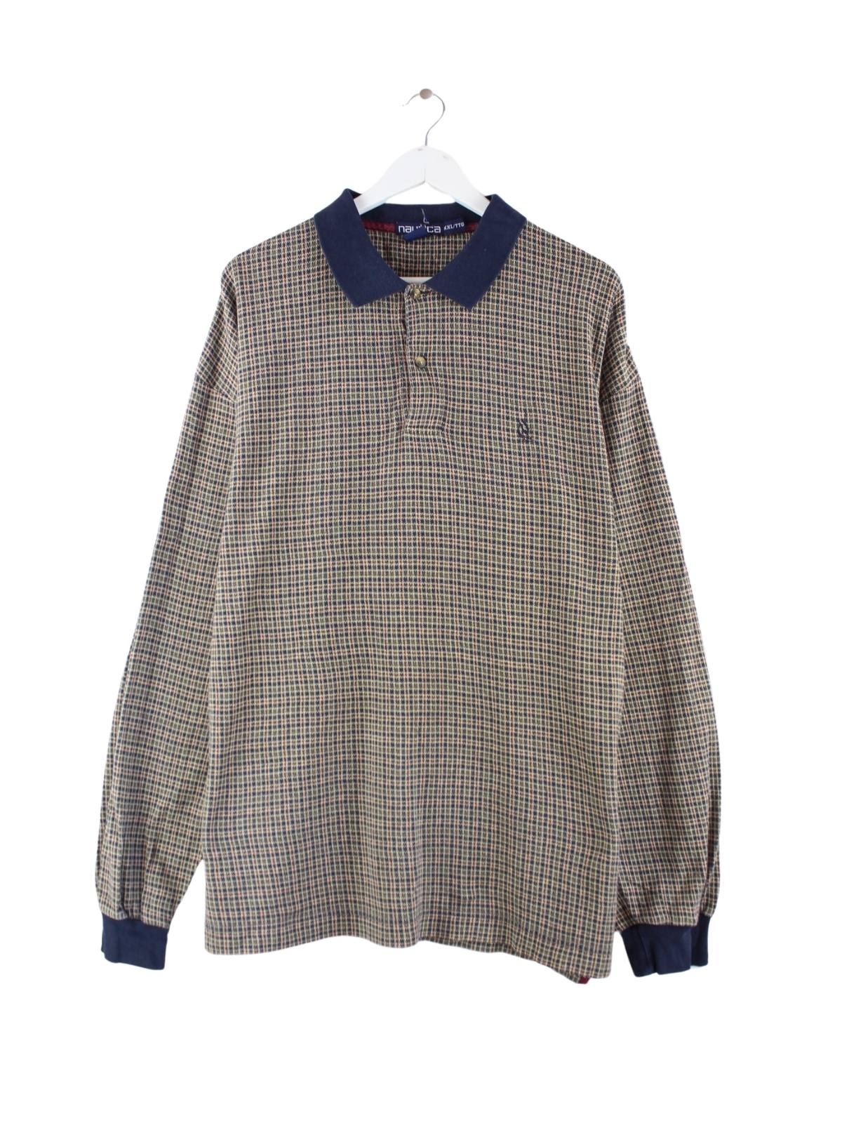 Nautica 90s Vintage Checked Langarm Polo Mehrfarbig XXL