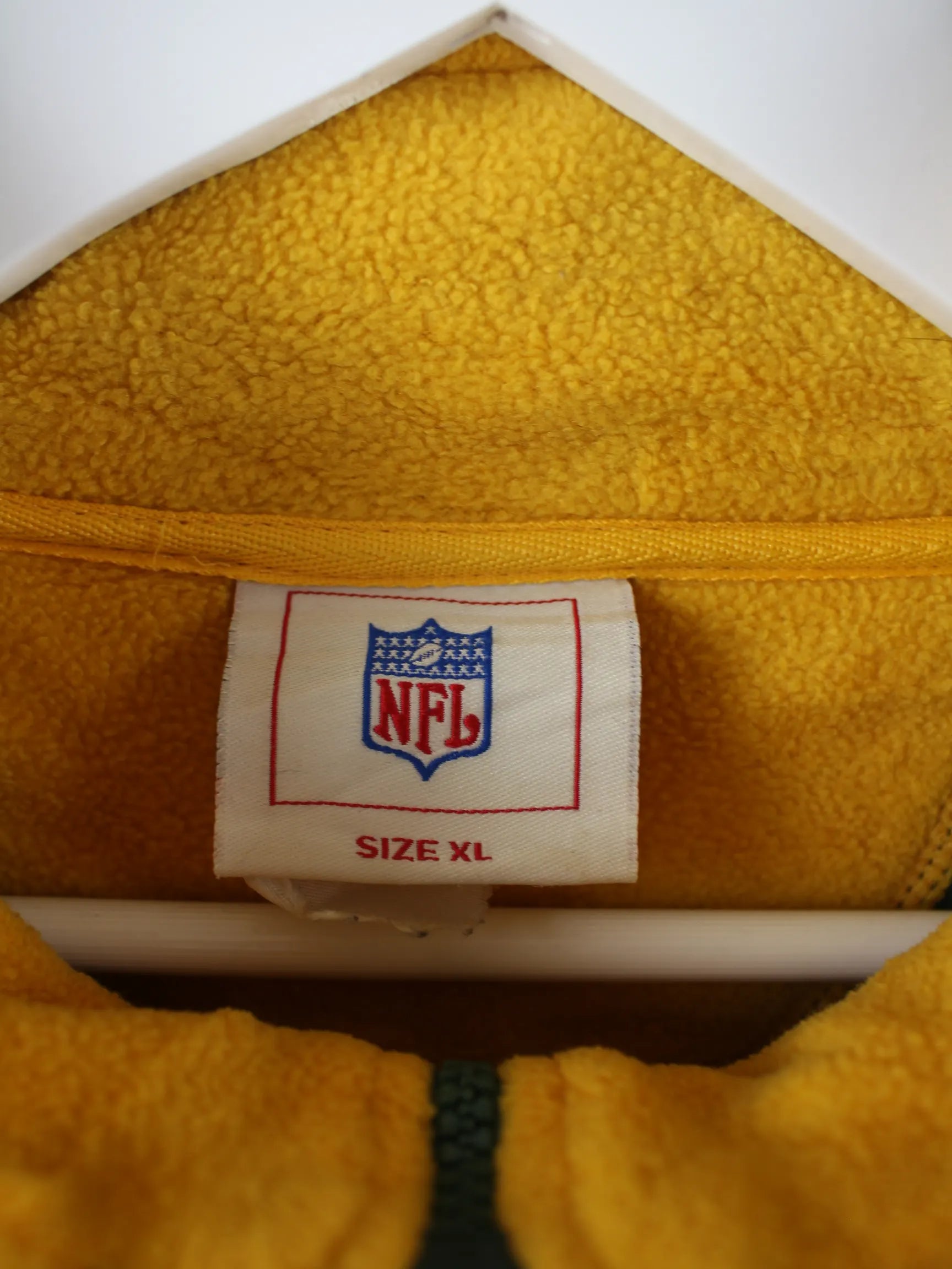 Leichte Jacke vom Label NFL mit kurzem Reißverschluß in Größe XL. Sie ist aus weichem Fleece angefertigt und in Grün auf Lager.