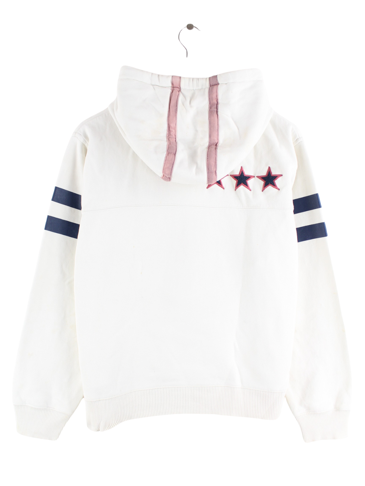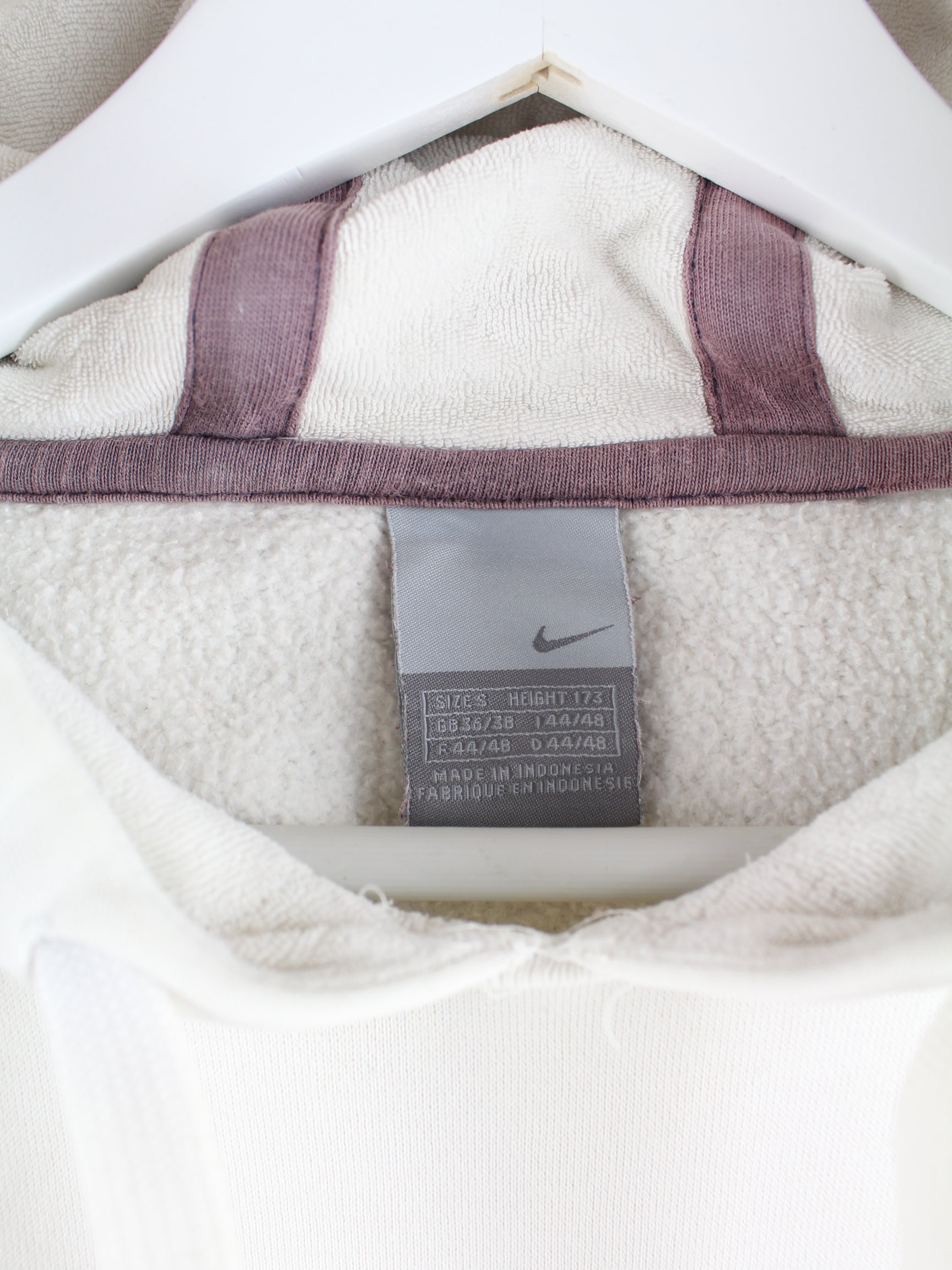 Hoodie vom Brand Nike mit Stickereien in Größe S. Er ist aus einer Baumwollmischung gemacht und in Weiß zu haben.
