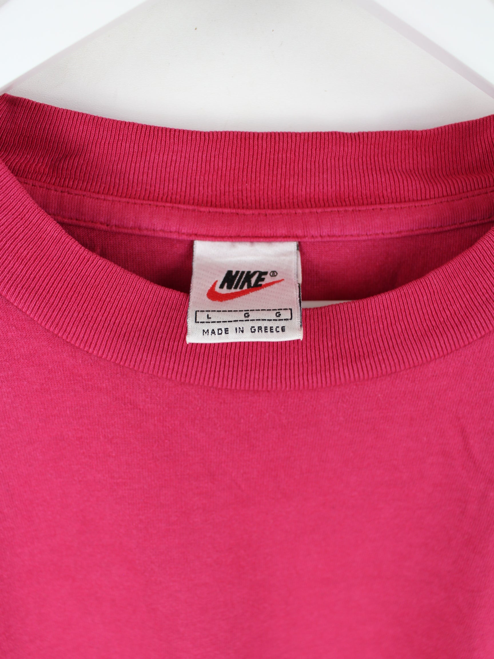 T-Shirt aus dem Hause Nike in Größe L aus den 90'ern. Es ist aus Baumwolle hergestellt und in Pink vorrätig.
