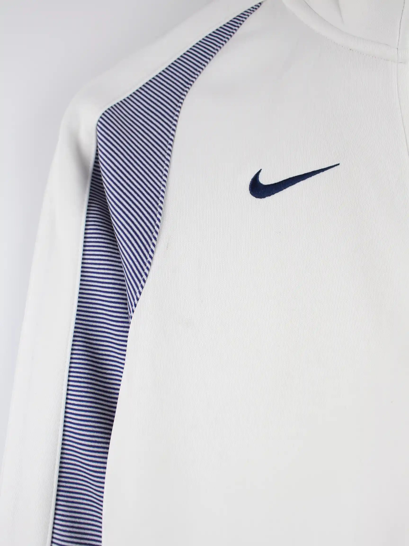 Trainingsjacke aus dem Hause Nike in Größe S. Sie ist aus Synthetik gemacht und in Weiß zu haben.