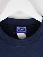 Sweater vom Label Pooh in Größe L aus den 90'ern. Er ist aus einer Baumwollmischung produziert und in Blau zu haben.