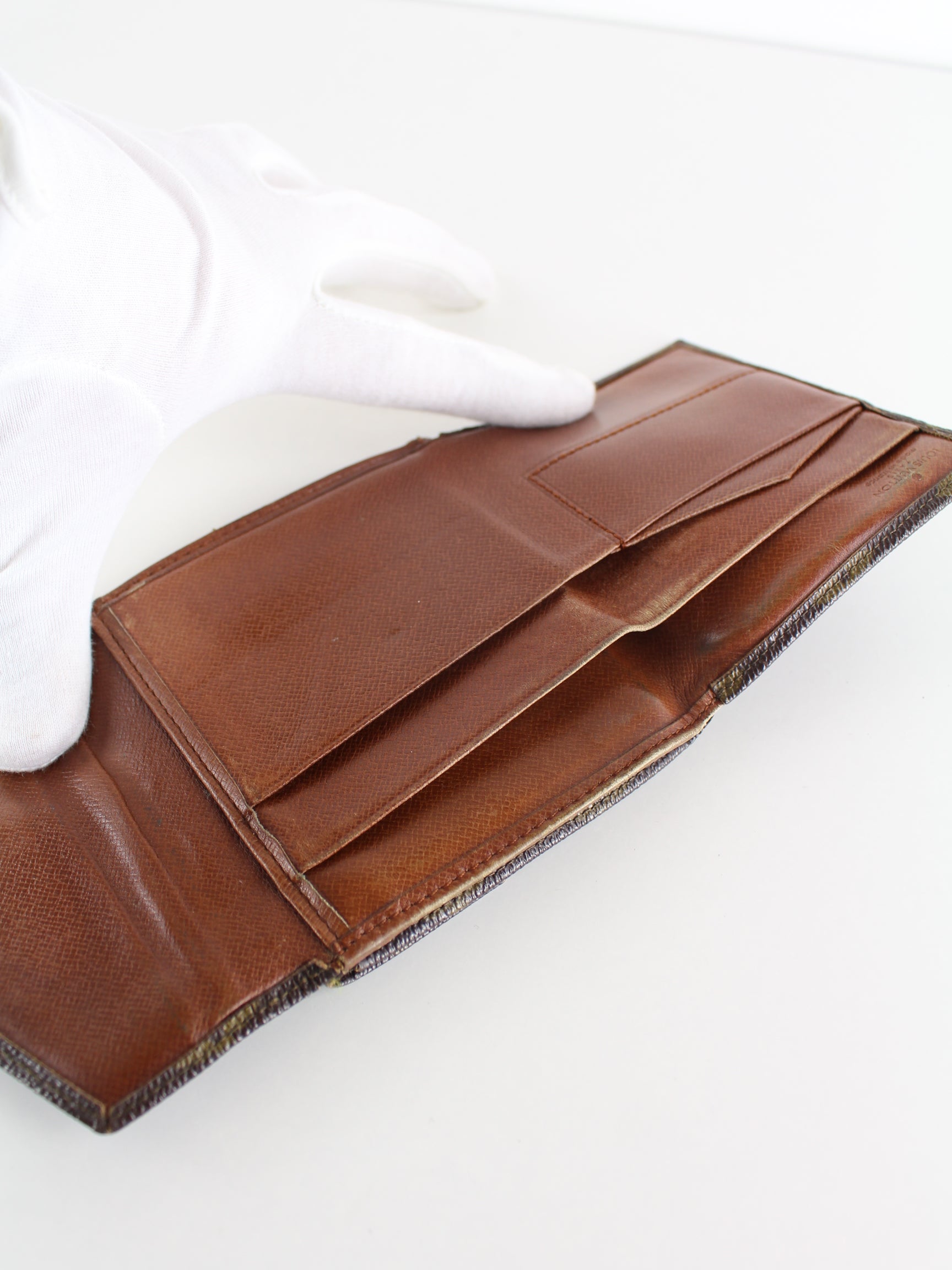 Vintage Louis Vuitton Monogramm Portemonnaie aus braunem Leder.