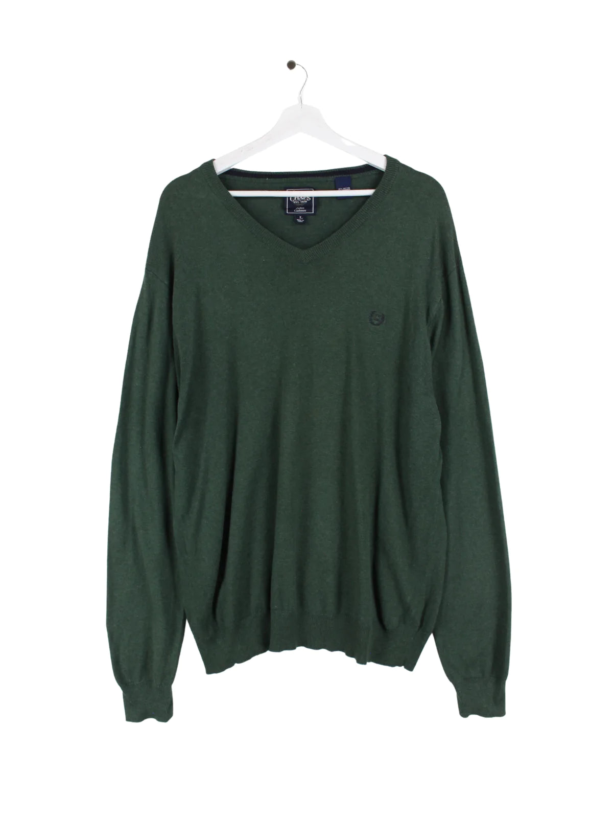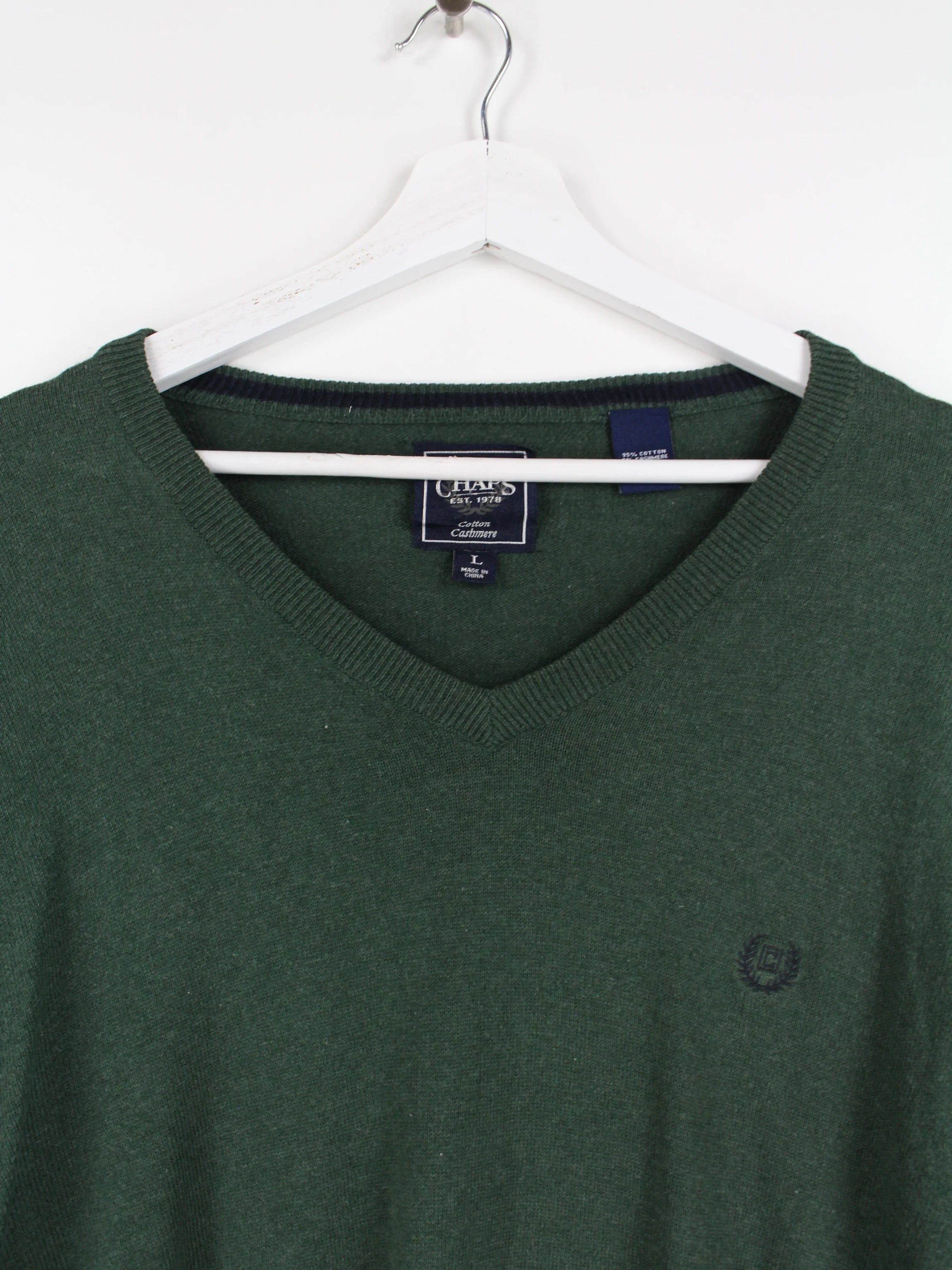 Pull col V vert de la marque latérale Chaps by Ralph Lauren.