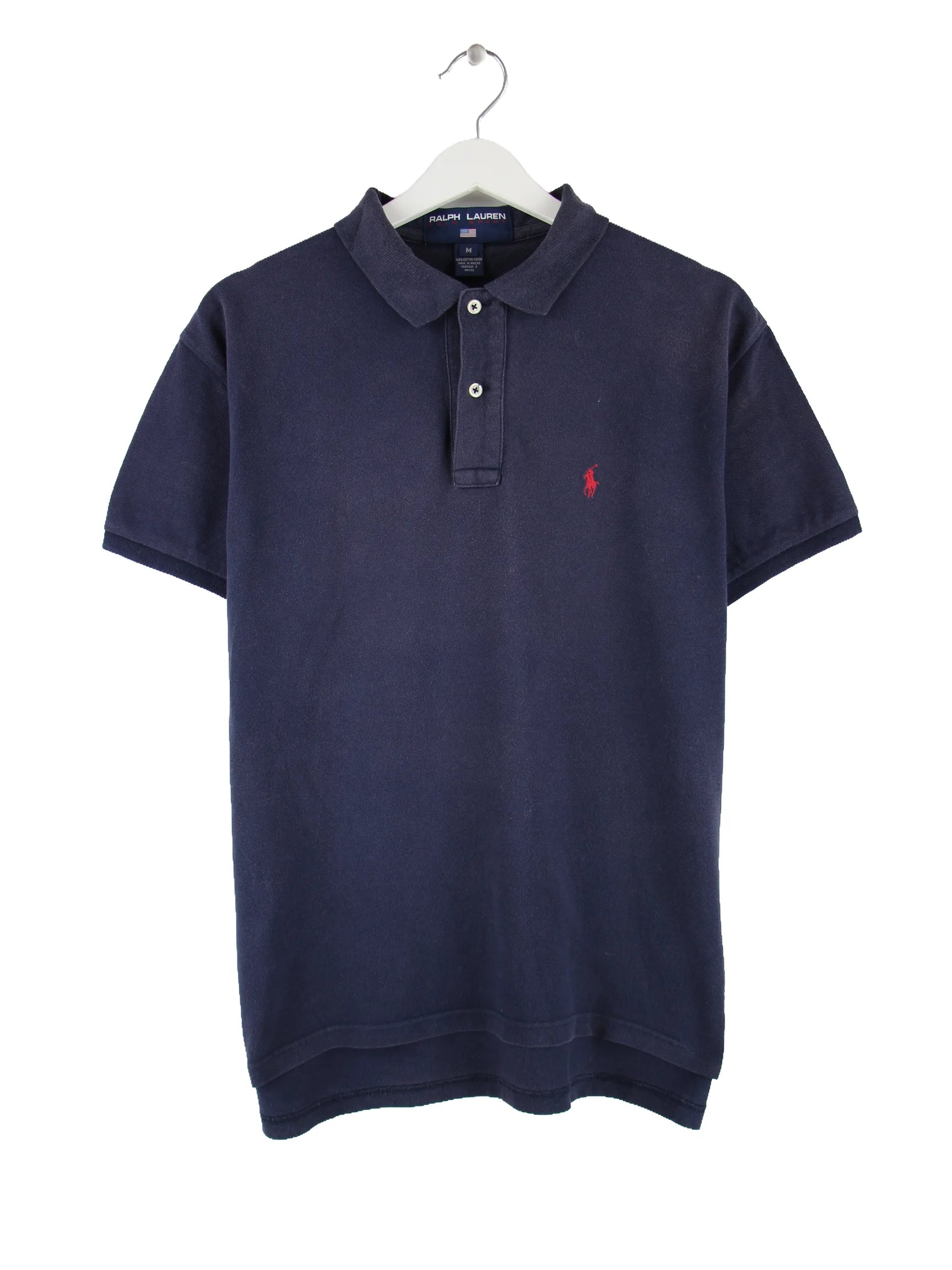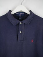 Blaues Poloshirt der Marke Ralph Lauren in Größe M. Es ist aus Baumwolle hergestellt. Den Zustand würden wir als 'In Ordnung' bezeichnen (vergl. Bilder).
