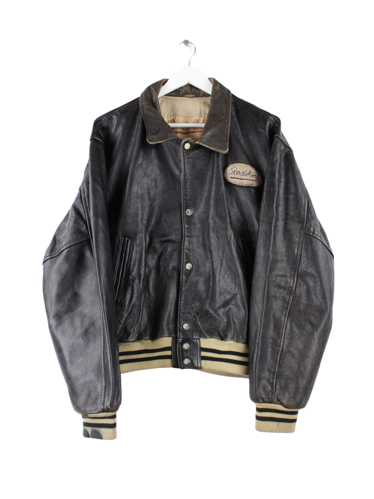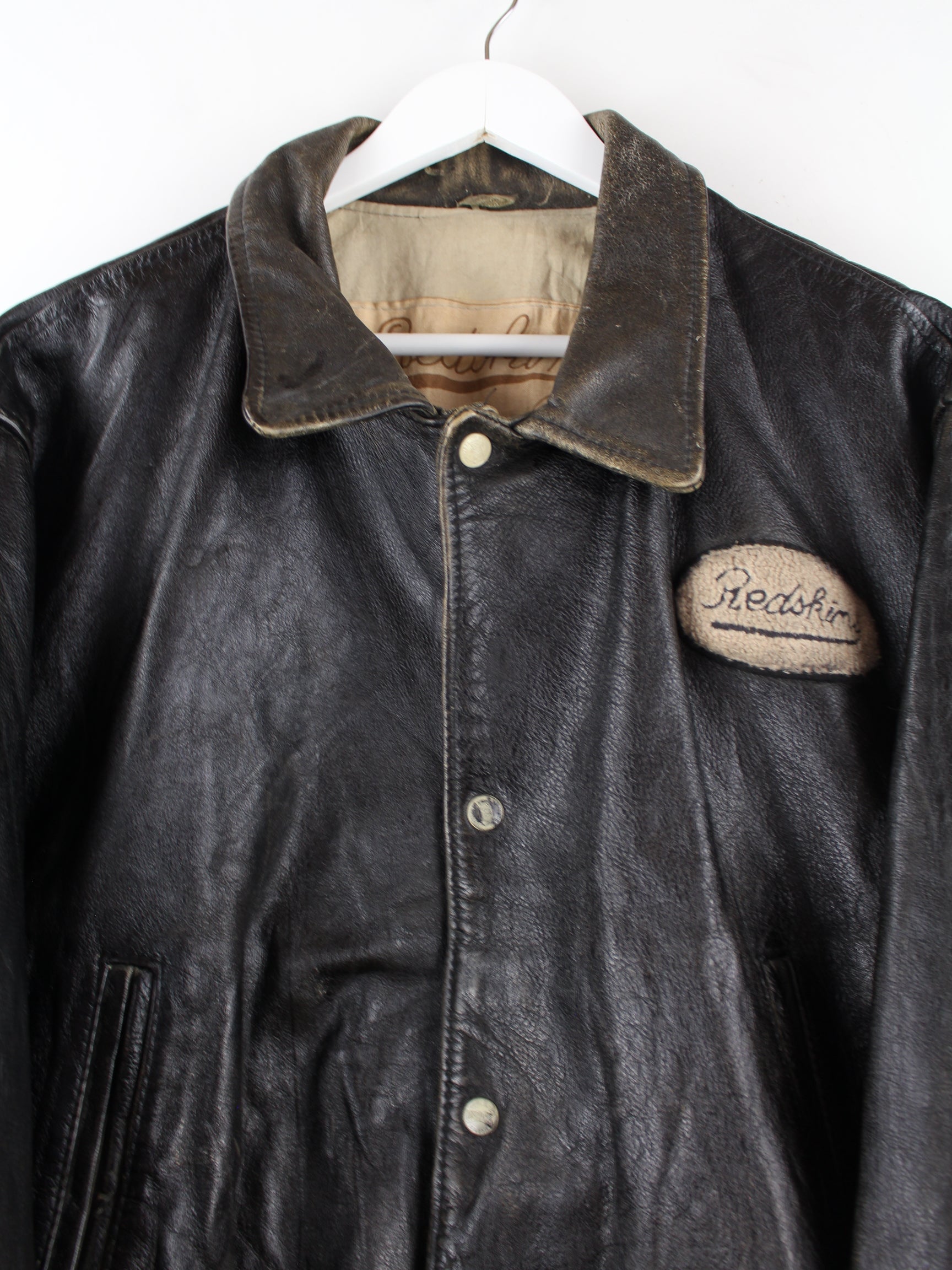 Redskins 80s Vintage Leder College Jacke Braun L
