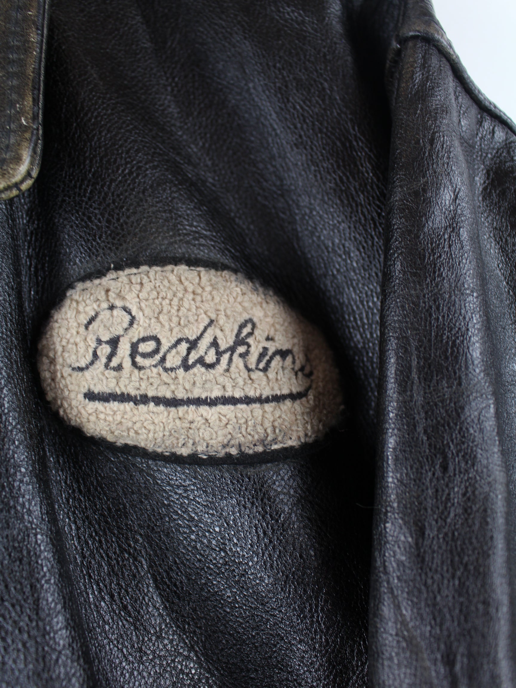 Braune Jacke des Labels Redskins aus den 80'ern in Größe L. Sie ist aus Leder hergestellt und in gutem Zustand bei uns vorrätig.