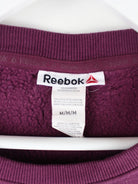Lilafarbener Sweater aus dem Hause Reebok in Größe M. Er ist aus einer Baumwollmischung produziert und in gutem Zustand in Stock. Mit schönem Logo Print.