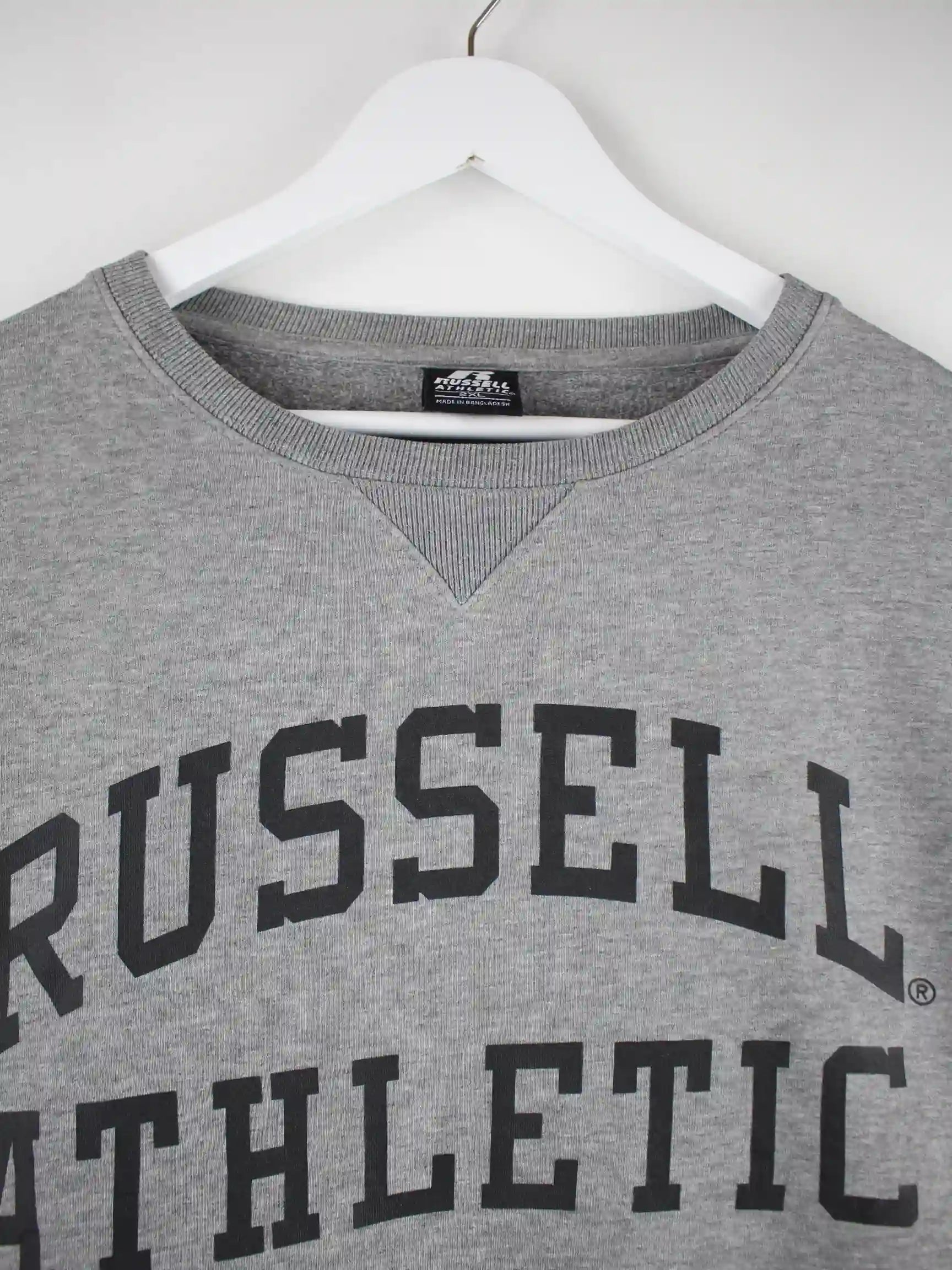 Grauer Sweater vom Label Russell Athletic in Größe XXL. Er ist aus einer Baumwollmischung und in sehr gutem Zustand zu haben. Mit schönem Logo Print.