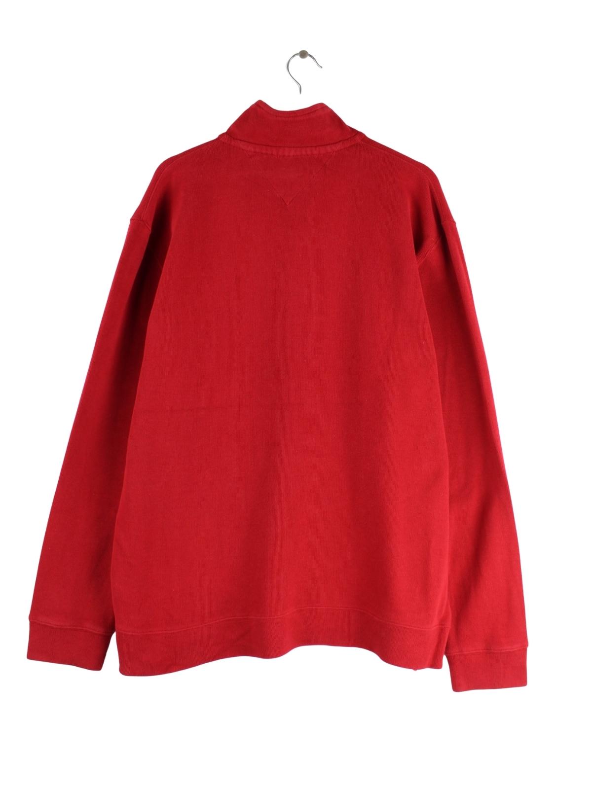 Roter Sweater mit halbem Reißverschluß der Brand Tommy Hilfiger in Größe 3XL. Er ist aus einer Baumwollmischung und in sehr gutem Zustand zu haben.