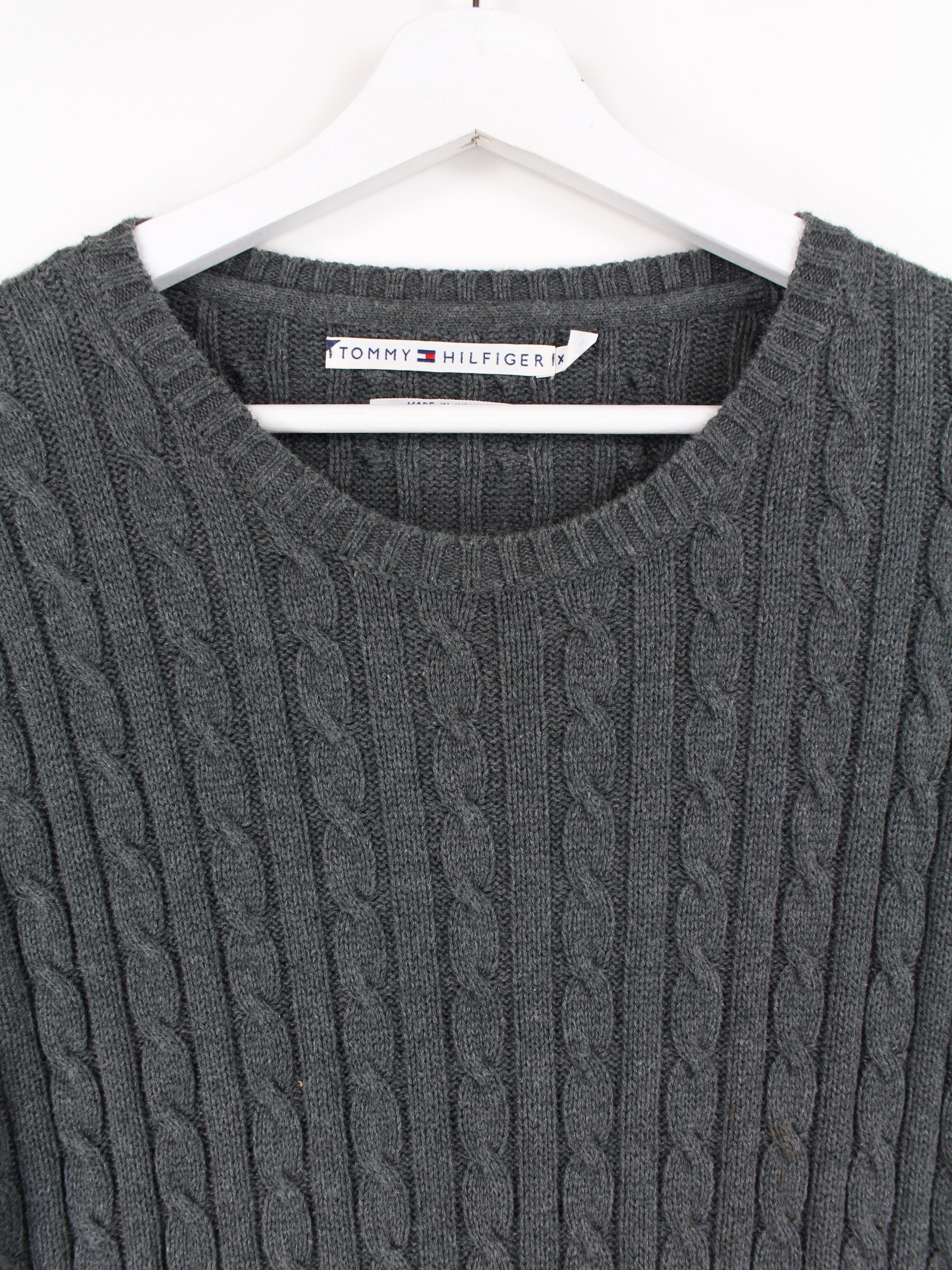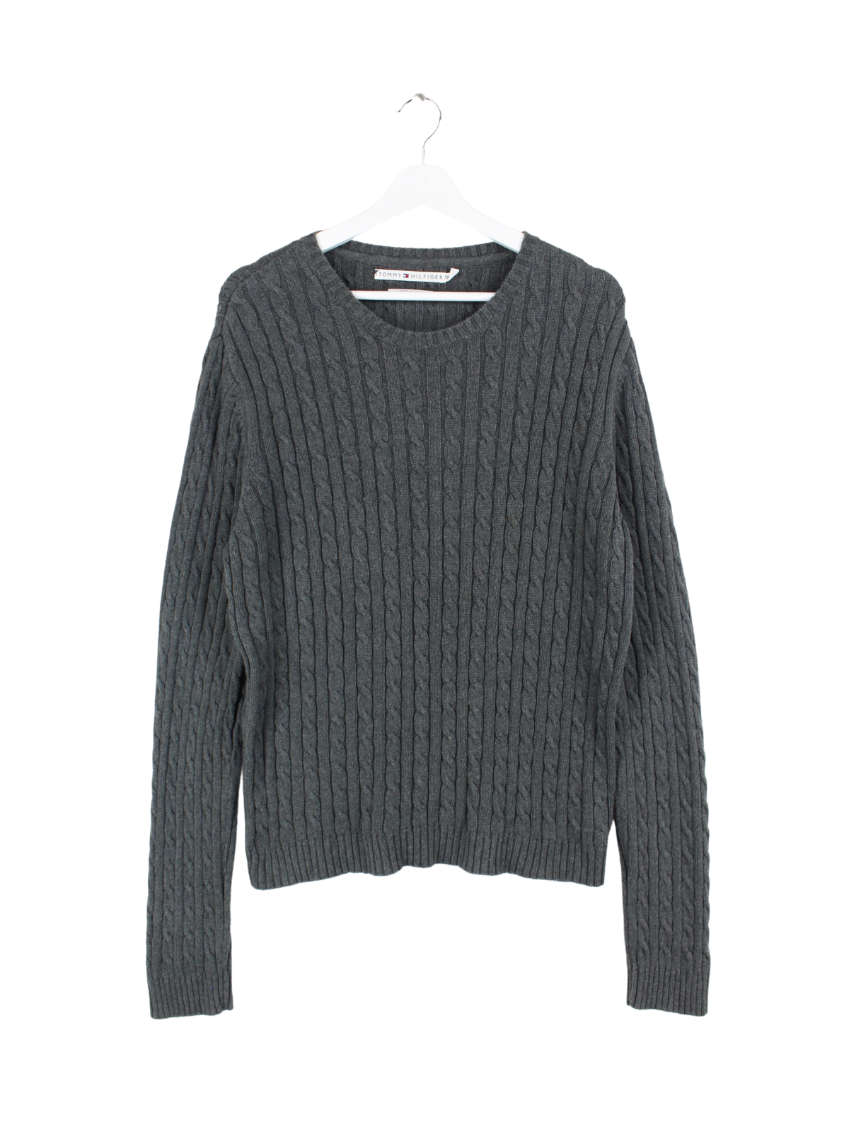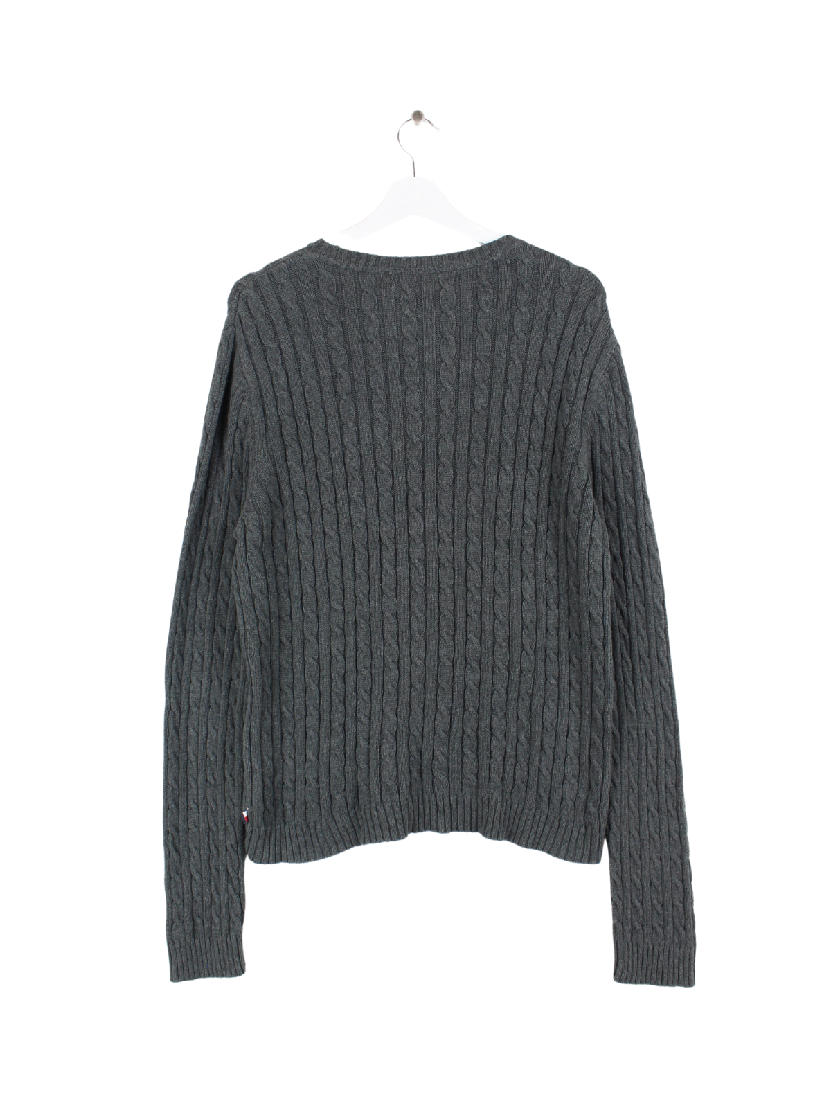 Pull en maille grise de la marque Tommy Hilfiger.