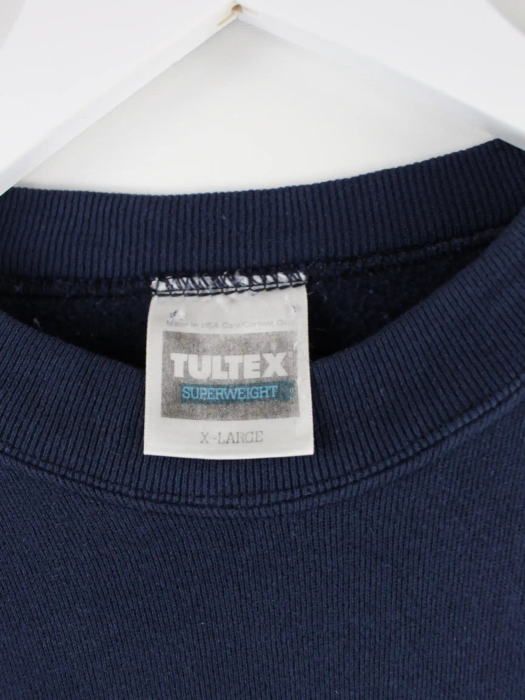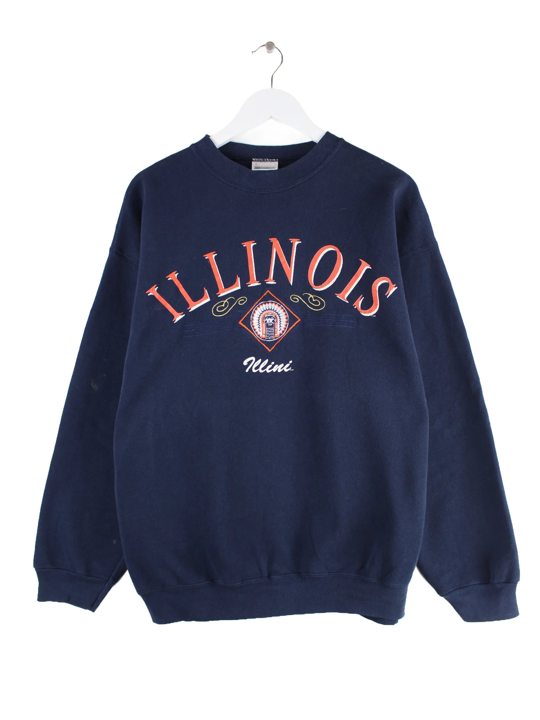 Sweater aus dem Hause Tultex in Größe XL aus den 90'ern. Er ist aus einer Baumwollmischung angefertigt und in Blau zu haben. Mit seltenem Illinois Print.