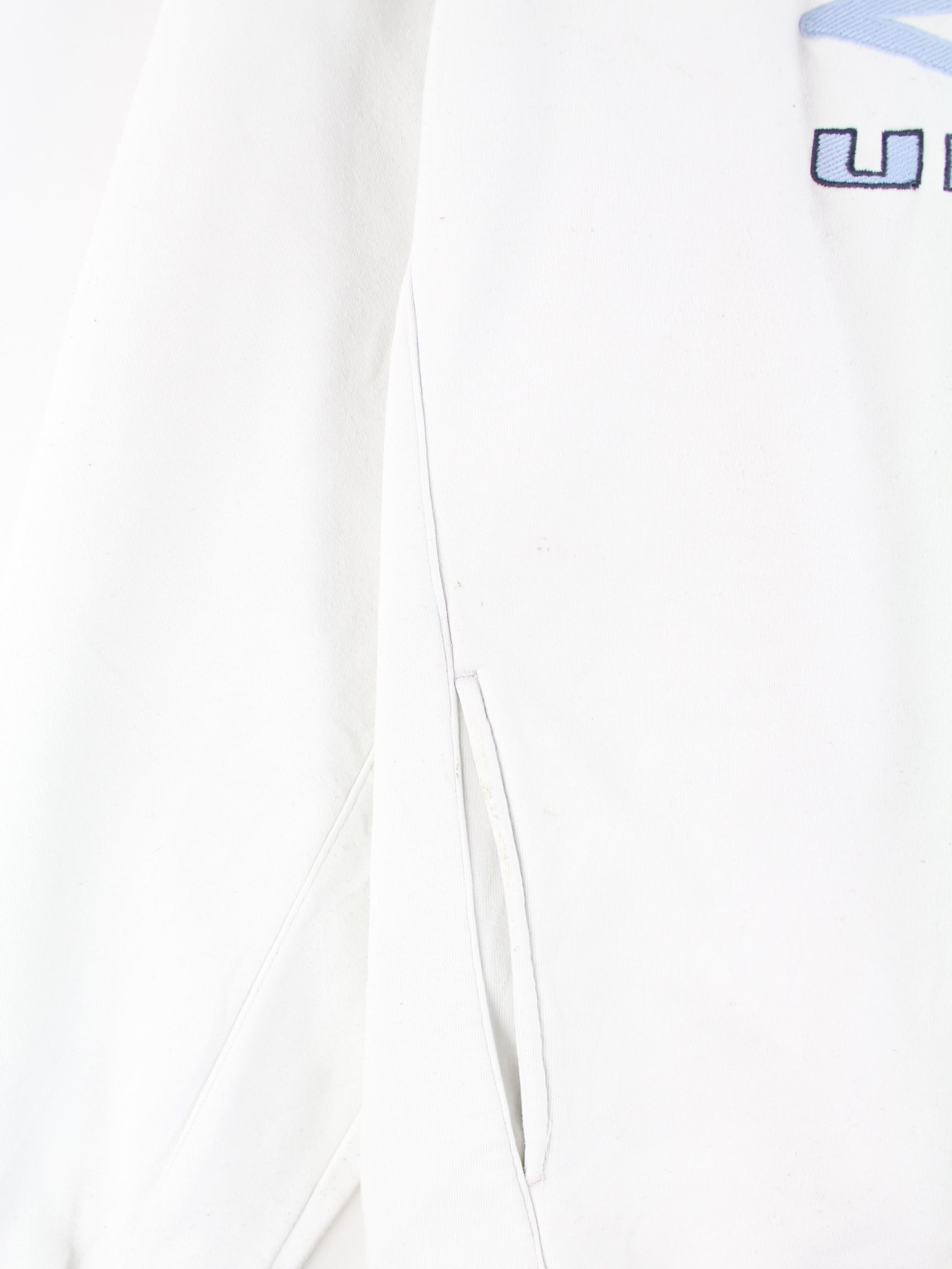 Hoodie vom Label Umbro mit Stickereien in Größe L aus den 90'ern. Er ist aus einer Baumwollmischung gemacht und in Weiß bei uns vorrätig.