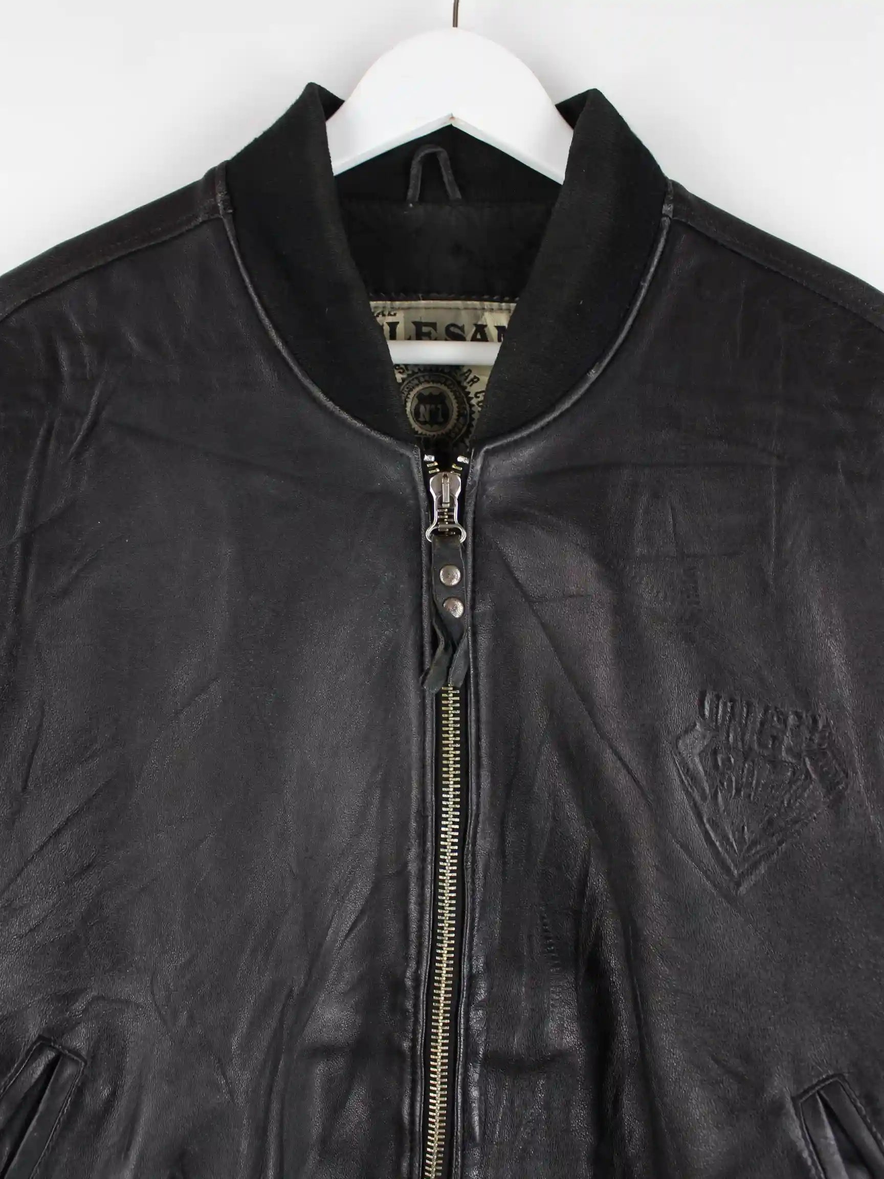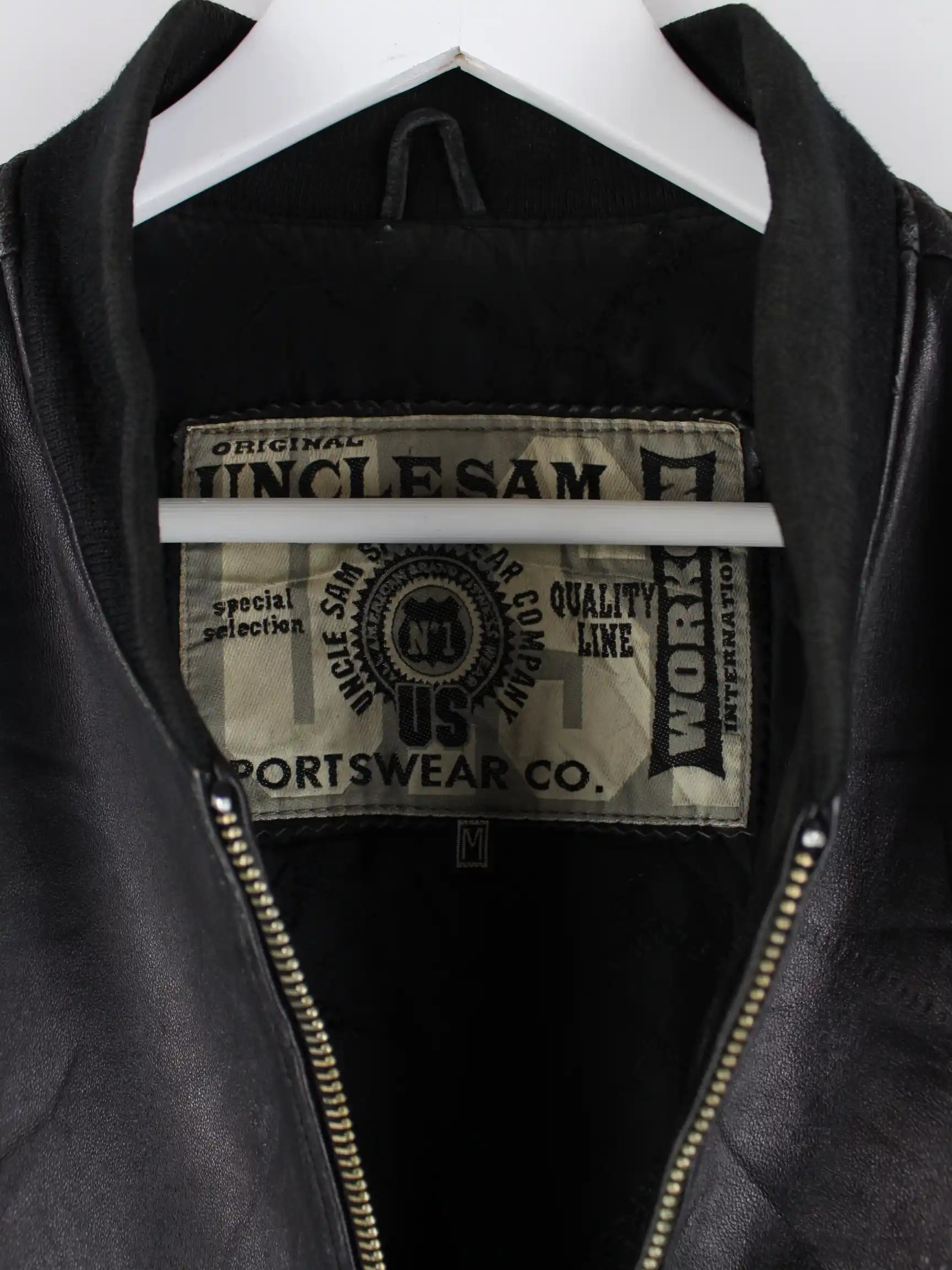 Jacke vom Label Uncle Sam in Größe M aus den 90'ern. Sie ist aus Leder und in Schwarz vorrätig.