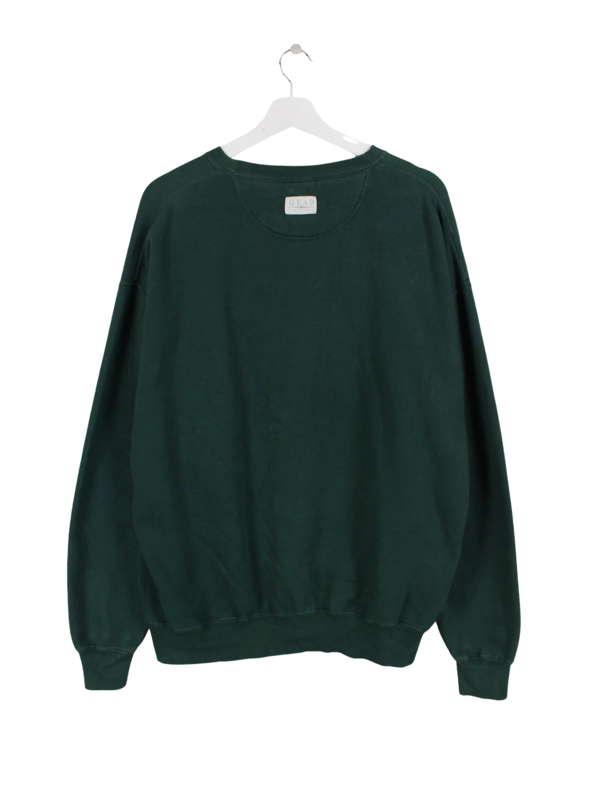 Pull vert avec logo brodé sur la poitrine.