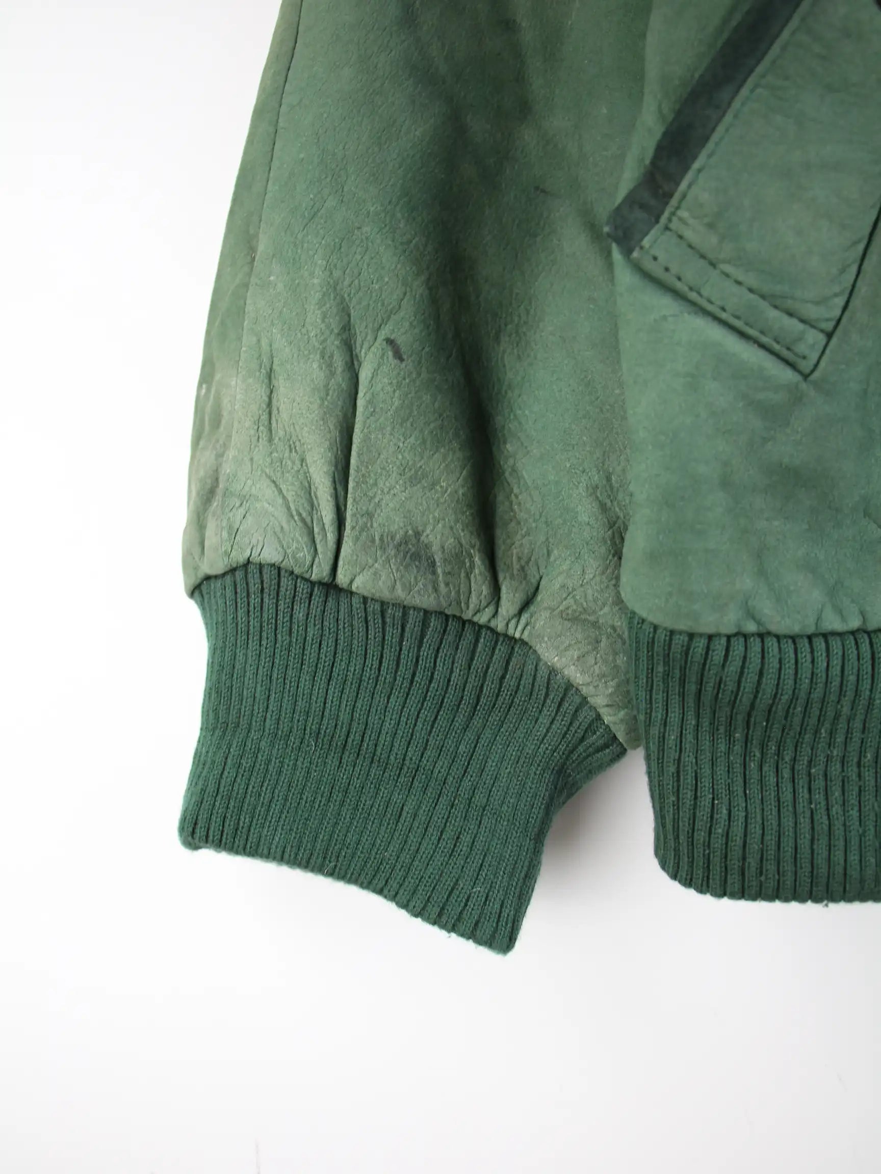 Grüne Vintage Jacke aus den 80'ern in Größe M. Sie ist aus Leder angefertigt. Den Zustand würden wir als 'In Ordnung' bezeichnen (vergl. Bilder).