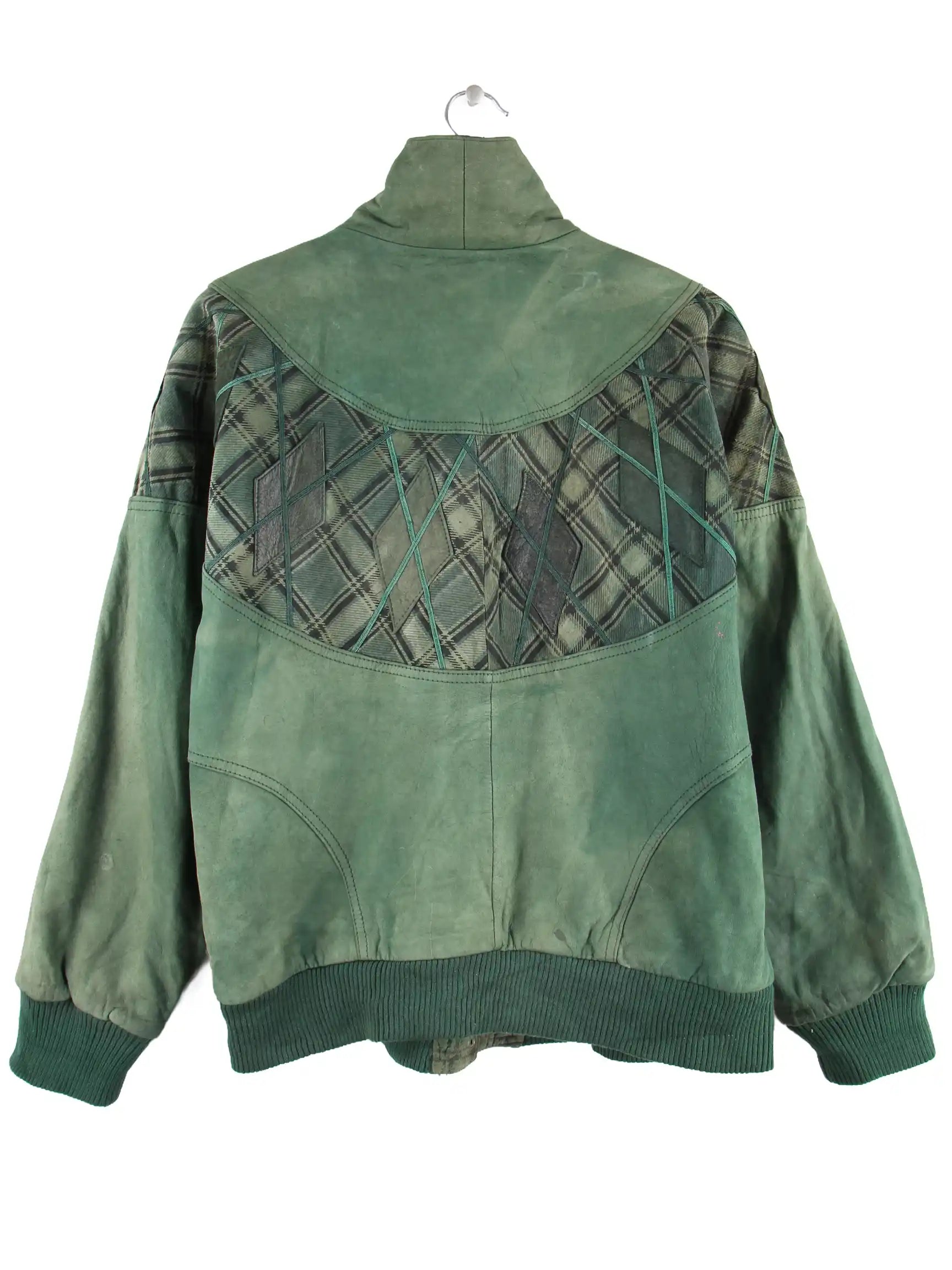 Vintage 80s Izzy Crazy Pattern Leder Jacke Grün M