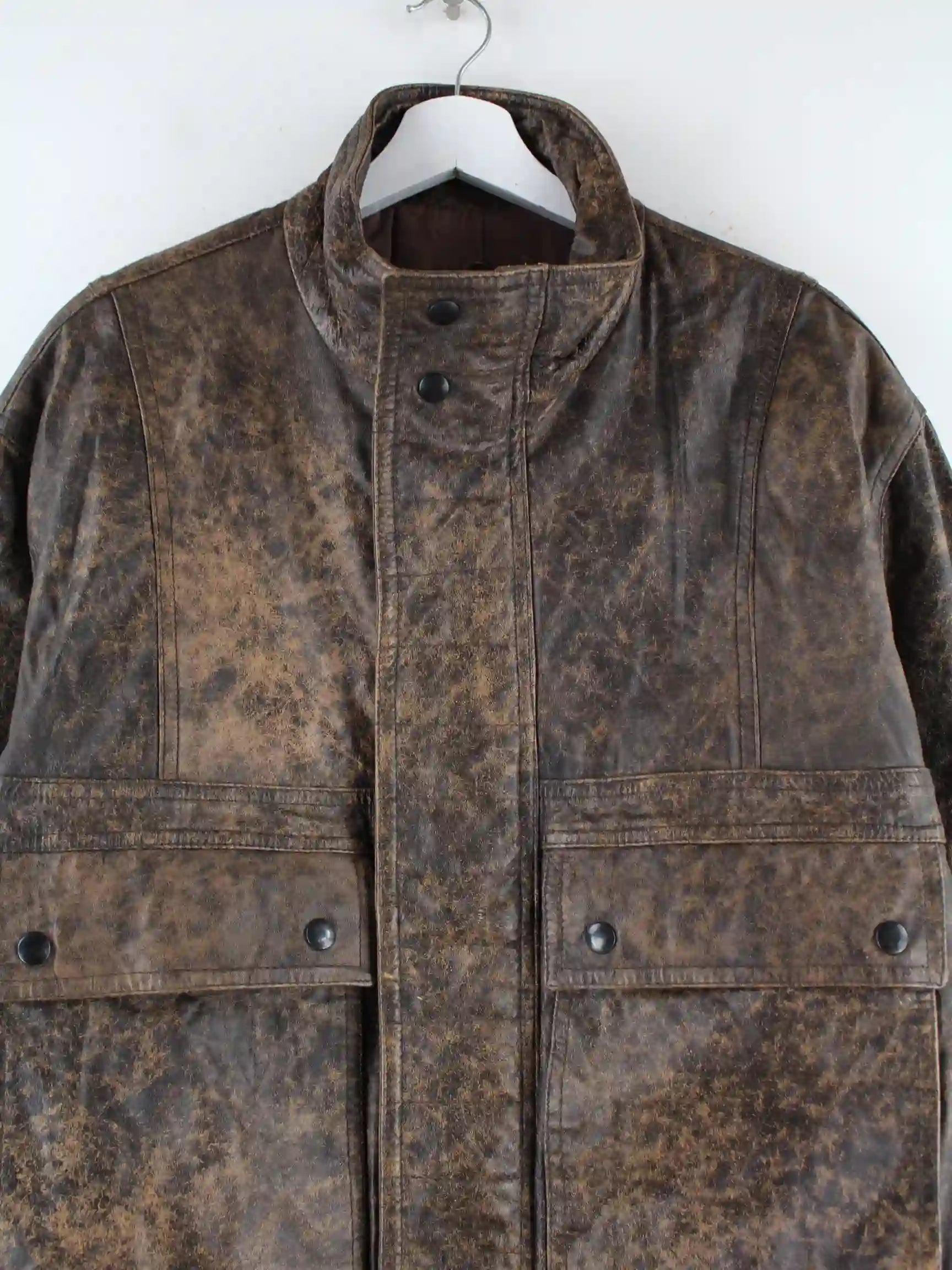 Braune Vintage Jacke aus den 90'ern in Größe XL. Sie ist aus Leder angefertigt und in gutem Zustand in Stock.