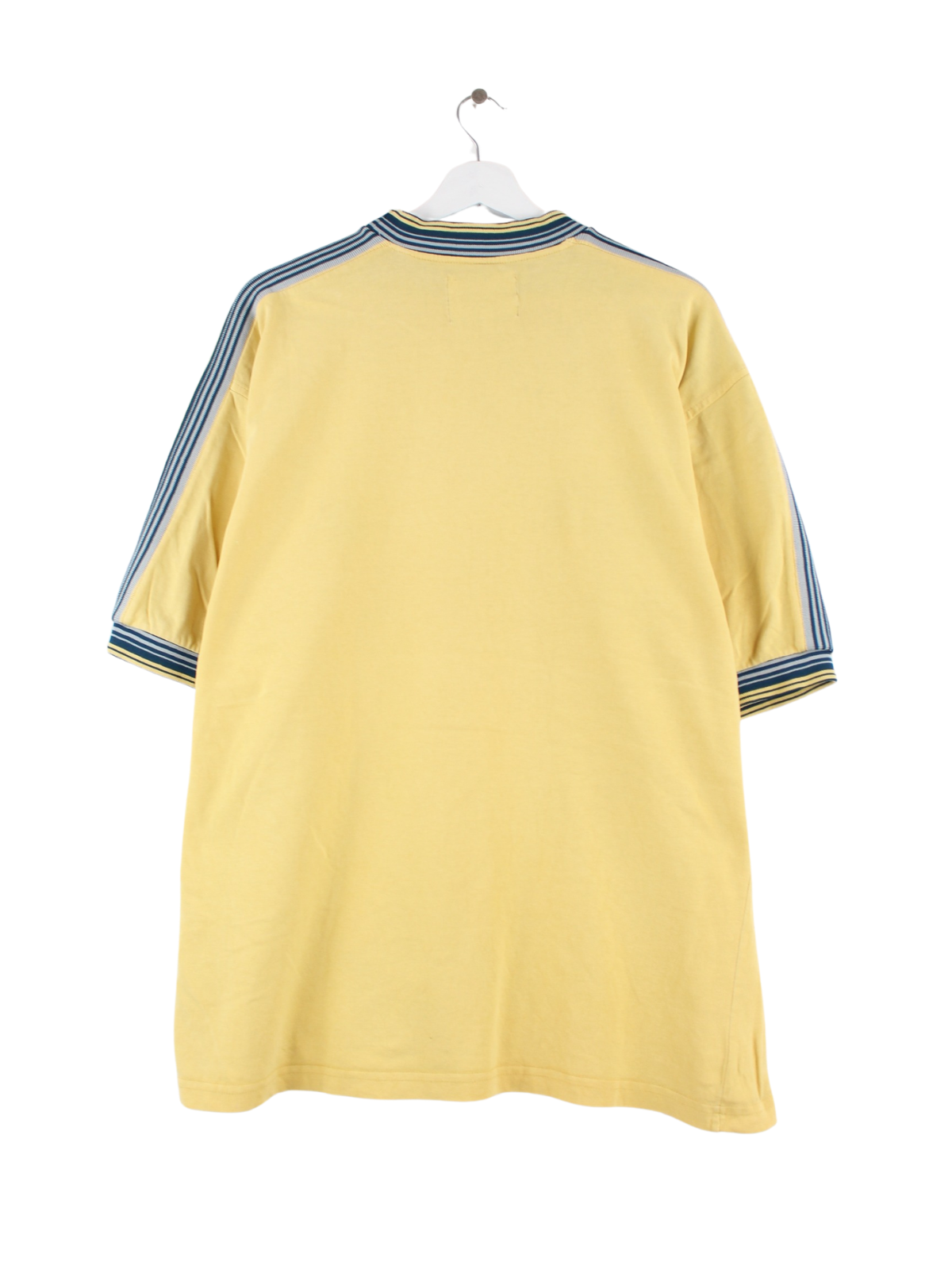 Vintage T-Shirt in Größe L aus den 90'ern. Es ist aus einer Baumwollmischung angefertigt und in Gelb vorrätig.