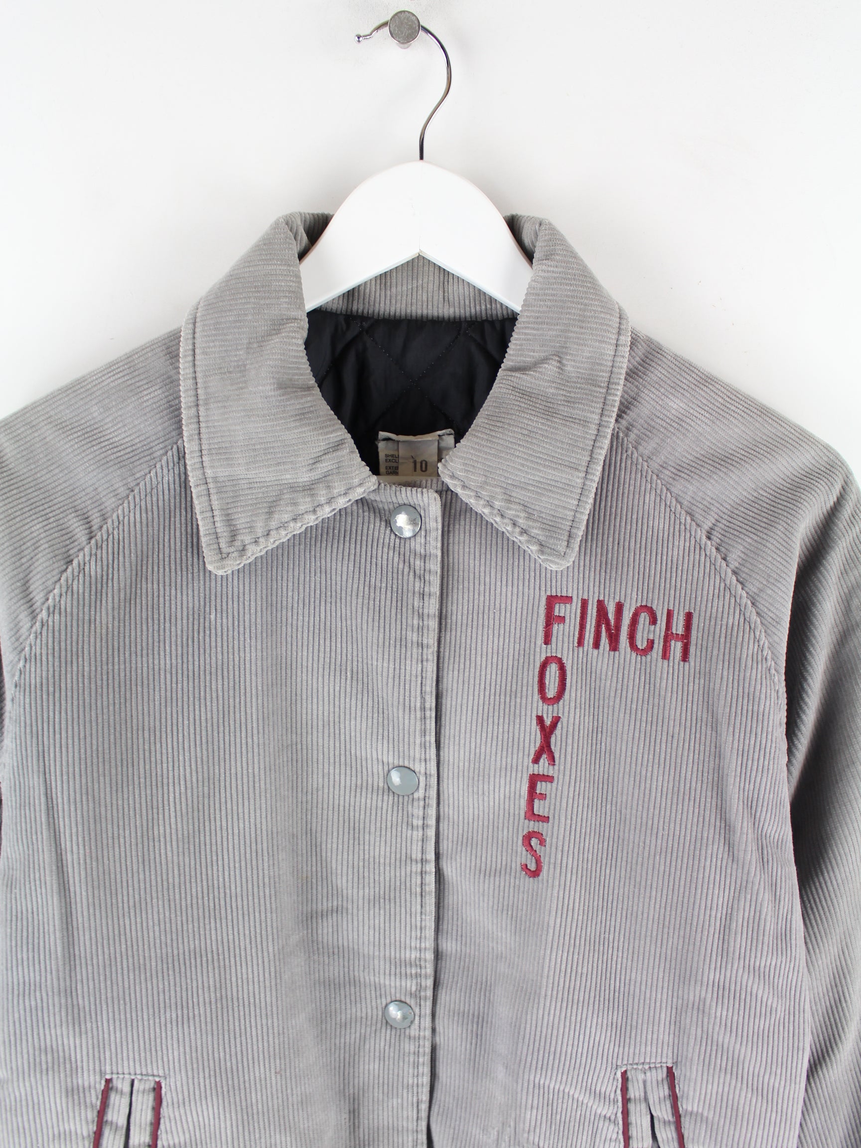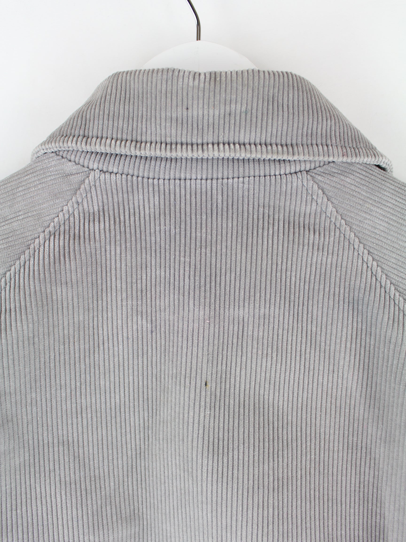 Vintage Jacke in Größe S aus den 90'ern. Sie ist aus einer Baumwollmischung produziert und in Grau lieferbar.