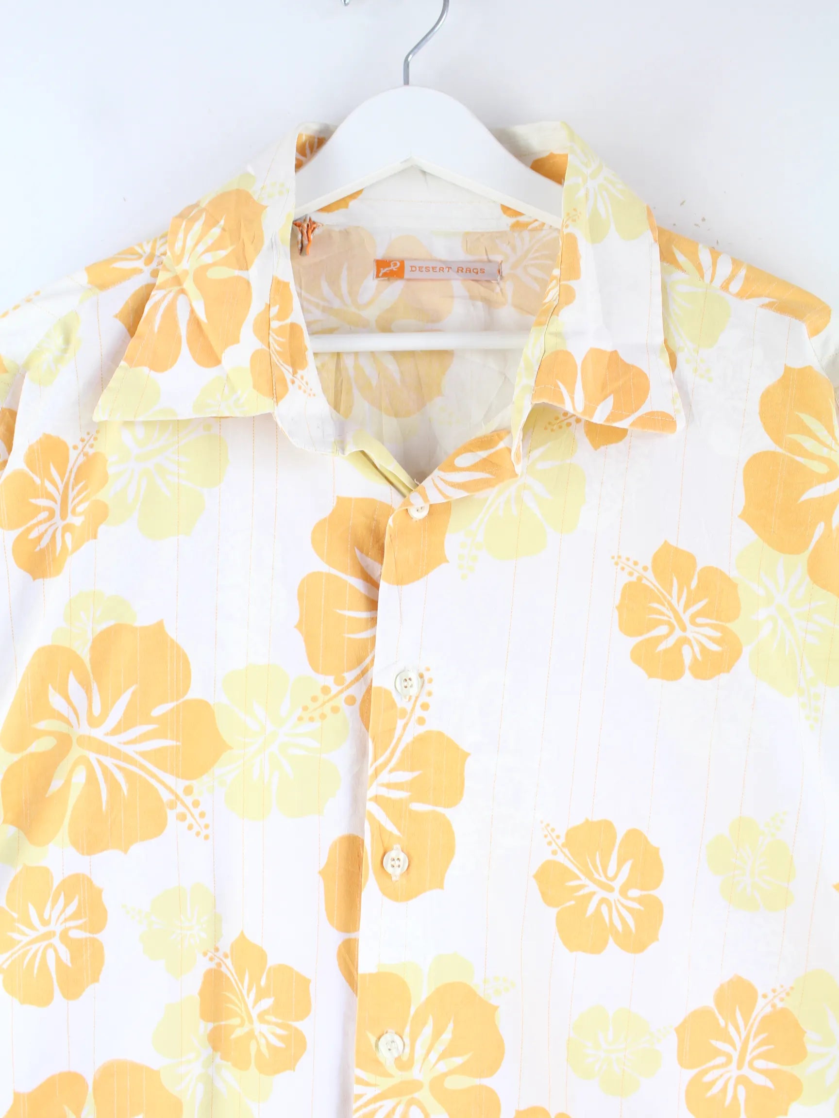 Vintage Flower Pattern Hemd Gelb L