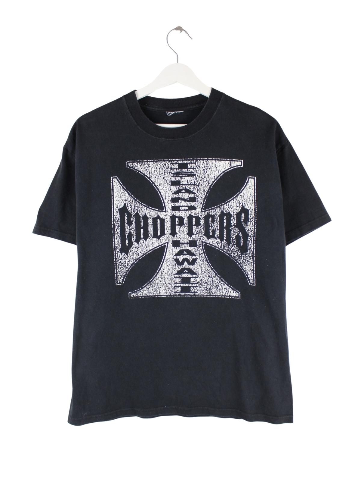 Schwarzes Vintage T-Shirt in Größe M. Es ist aus Baumwolle angefertigt und in gutem Zustand im Angebot. Mit chiquem Choppers Print.