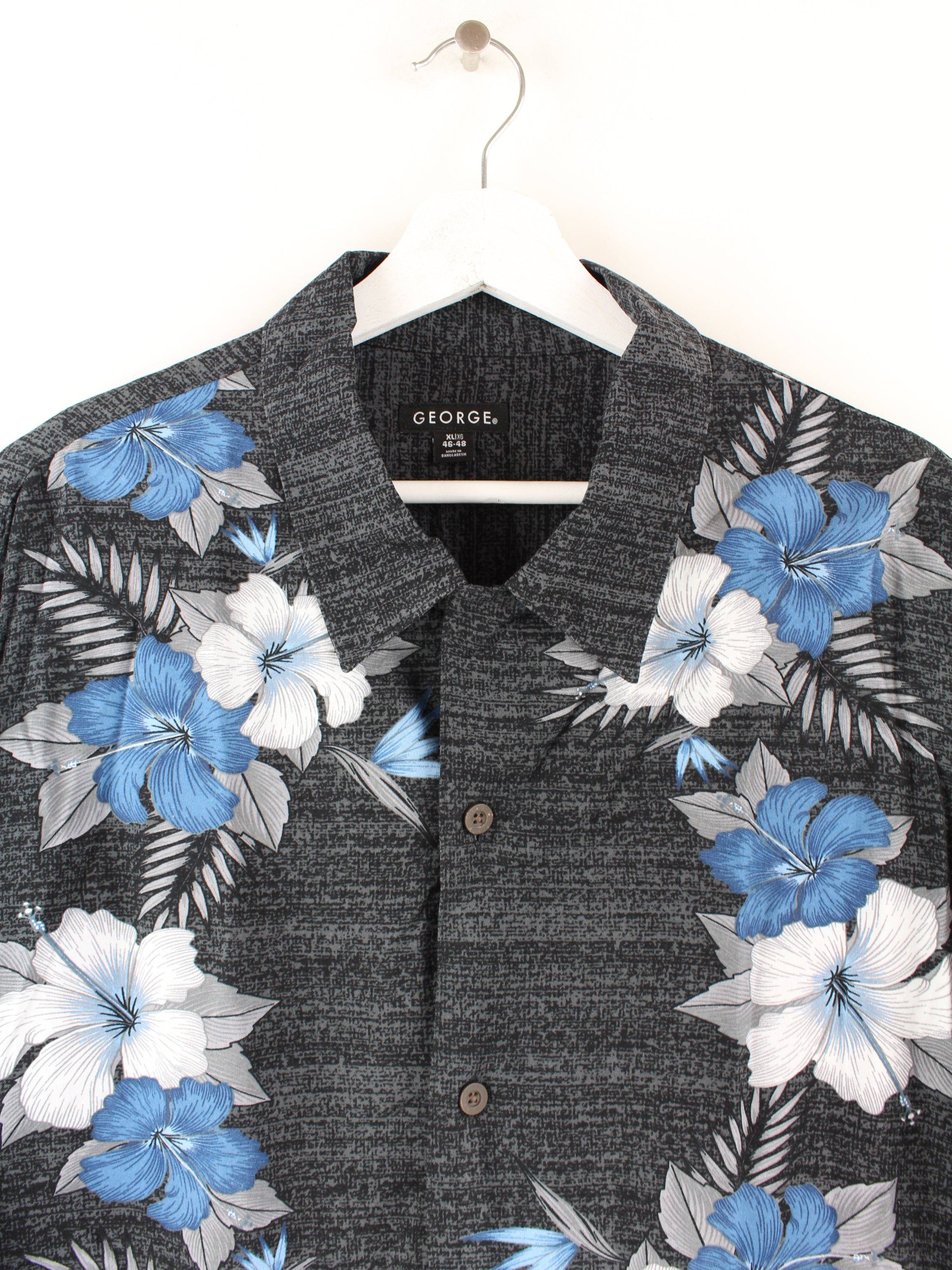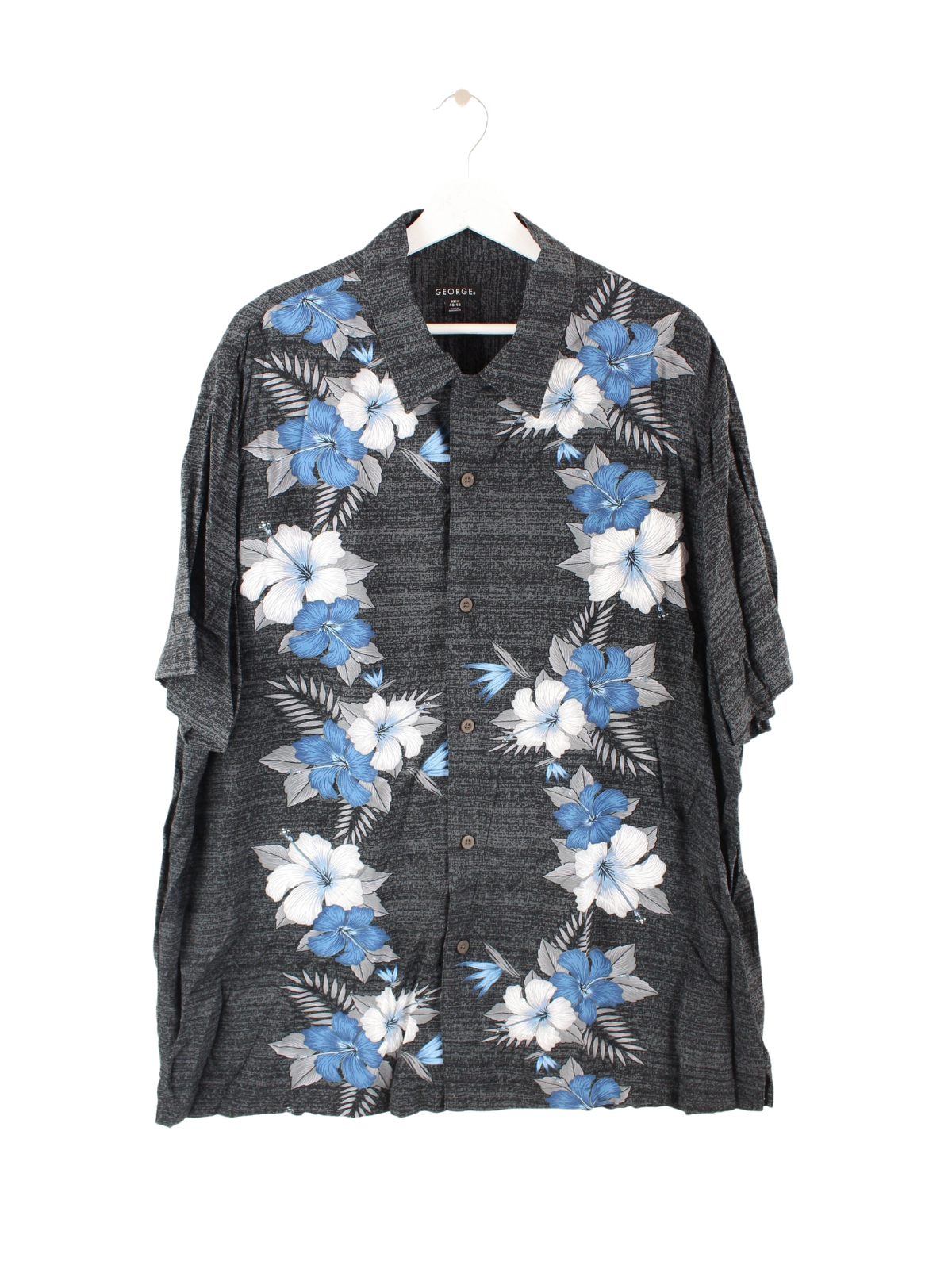 Vintage Hawaii Flowers Hemd Grau XL