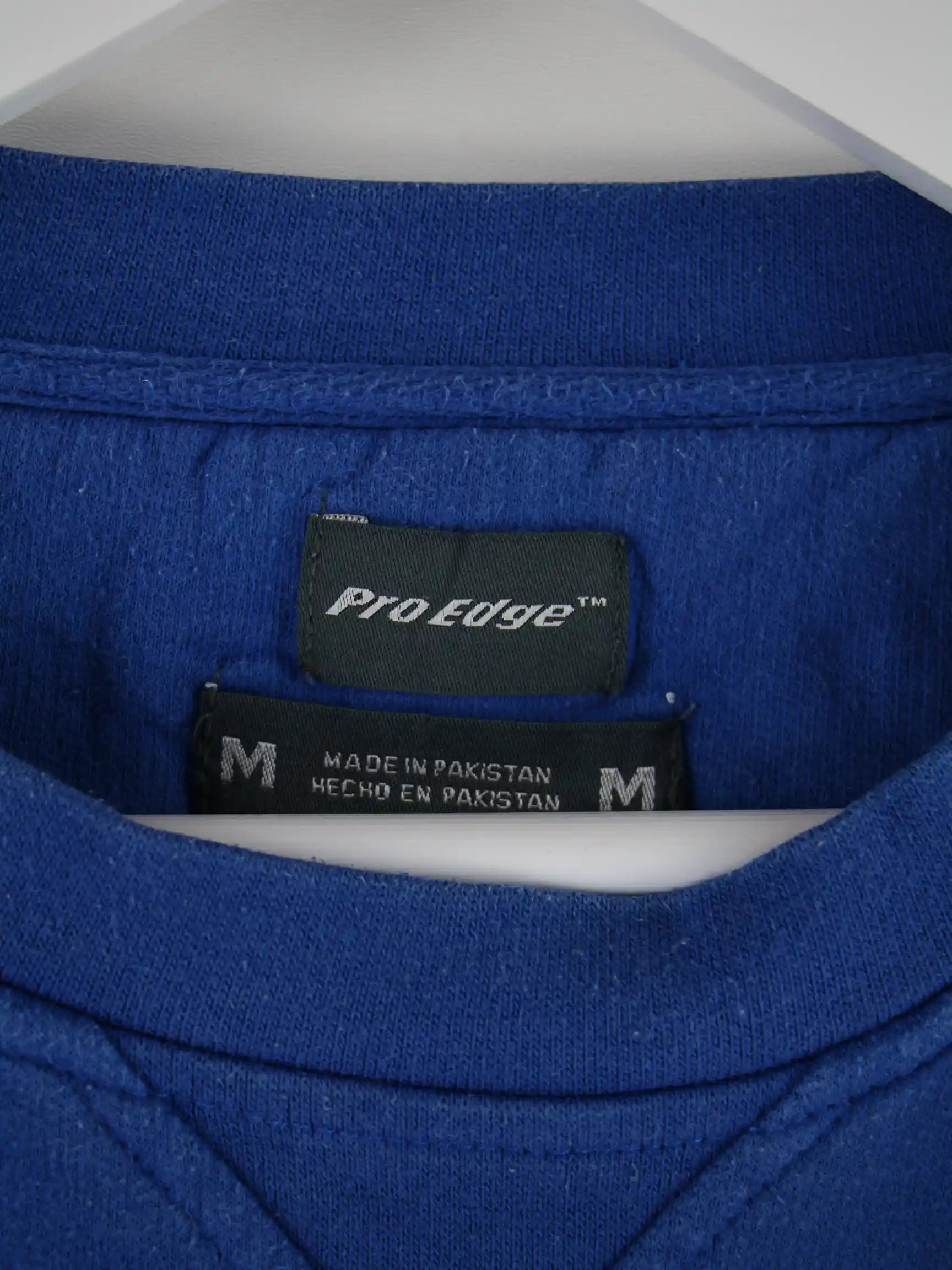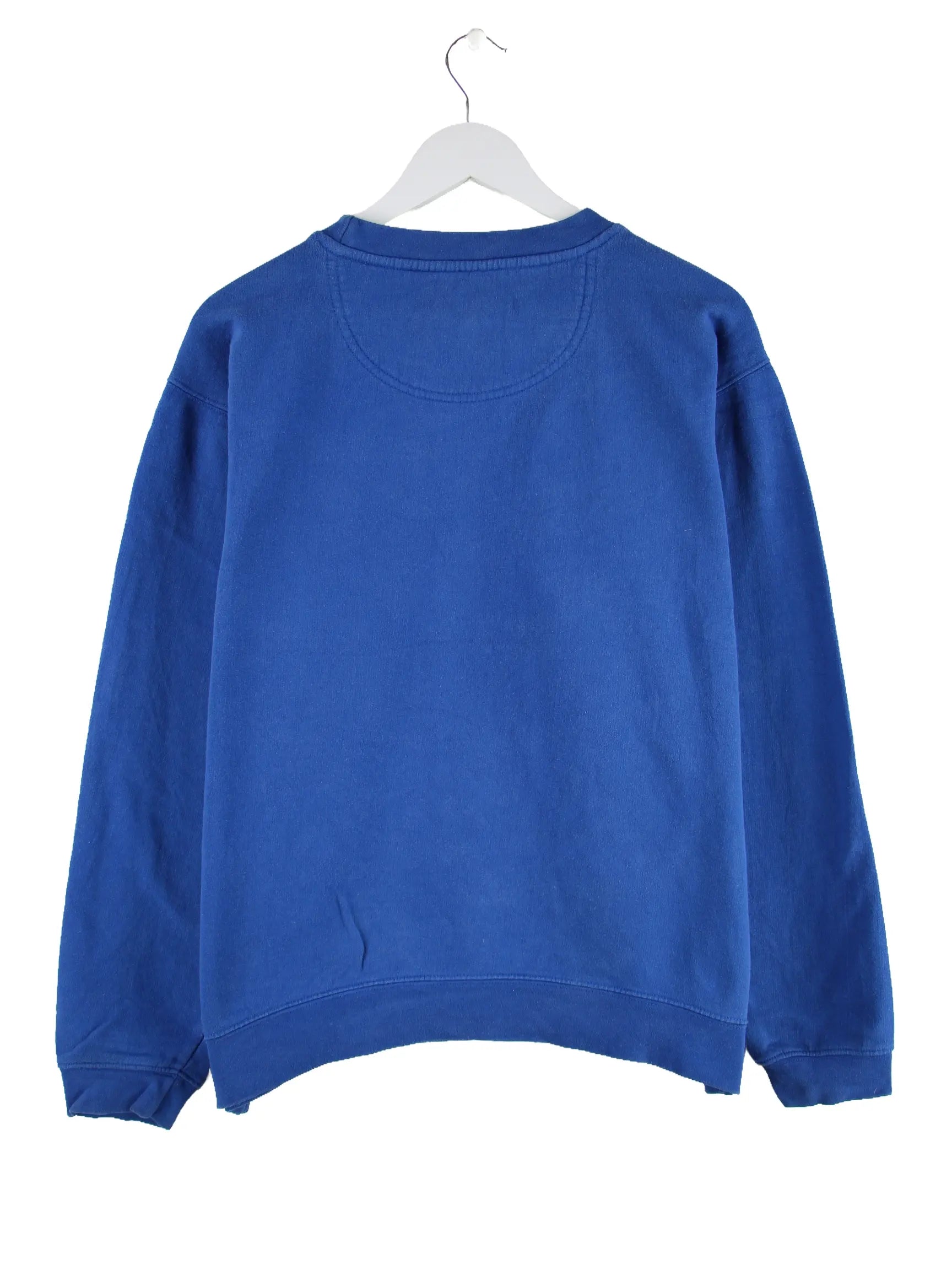 Vintage Sweater in Größe M. Er ist aus einer Baumwollmischung und in Blau vorrätig.