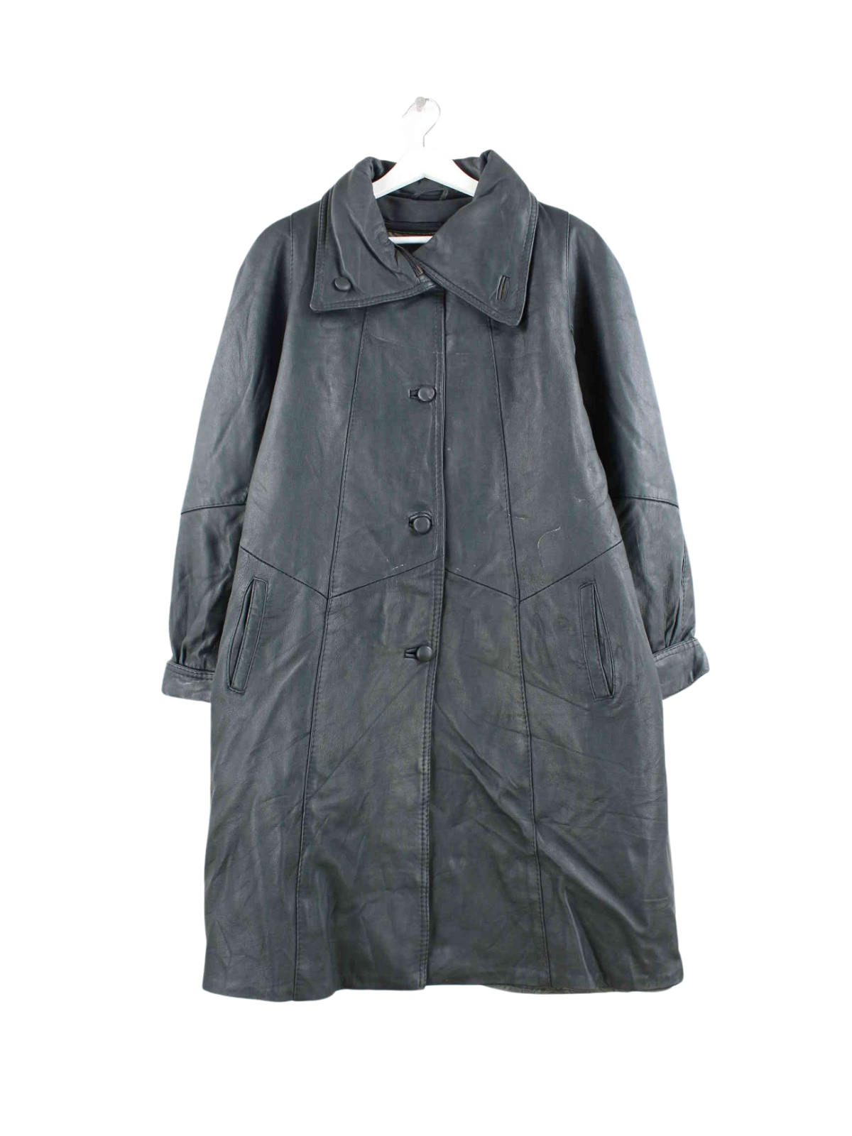 Vintage Leder Mantel Schwarz XL