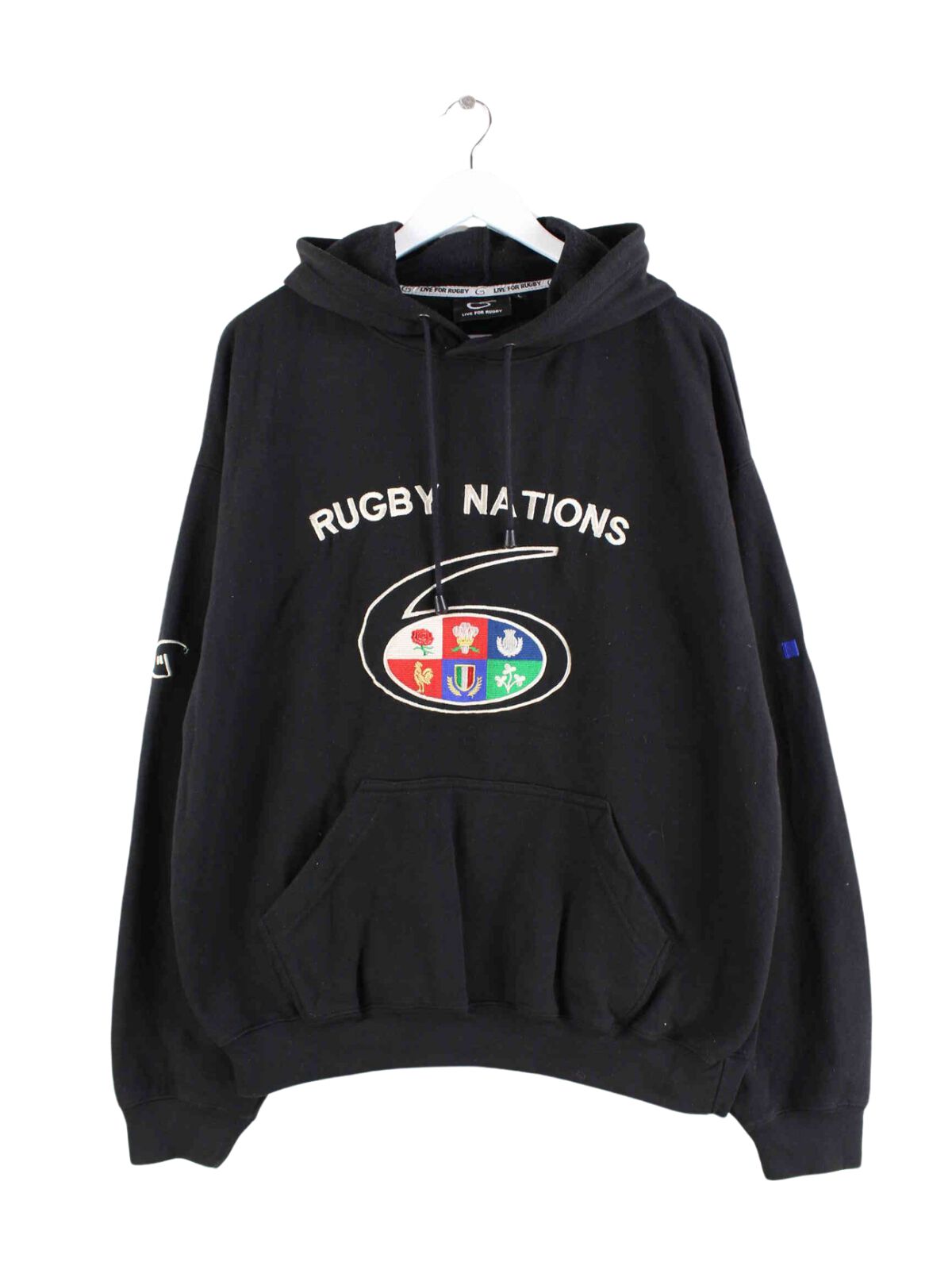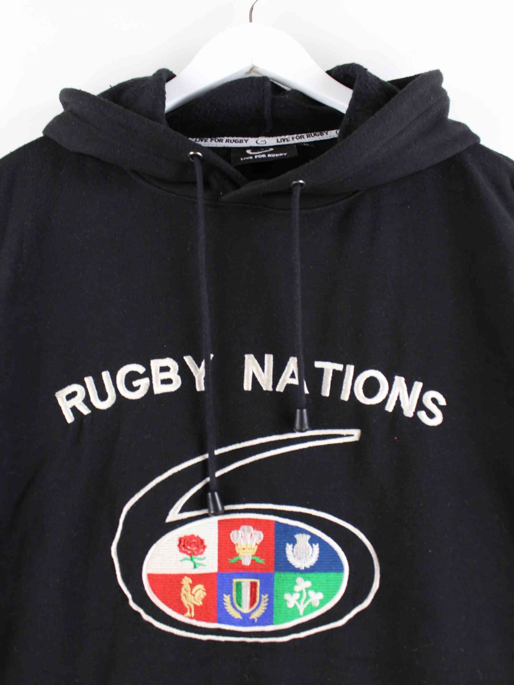 Vintage y2k Rugby Embroidered Hoodie Schwarz L