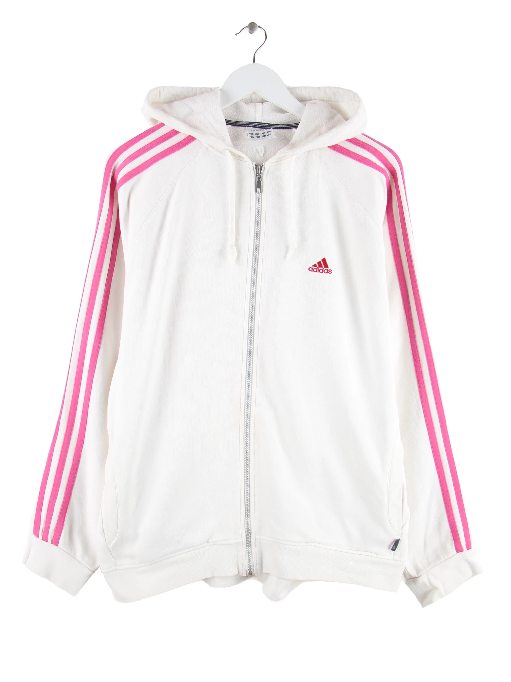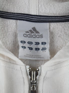 Hoodie von Adidas mit Reißverschluß in Größe M. Er ist aus einer Baumwollmischung und in Weiß bei uns vorrätig.
