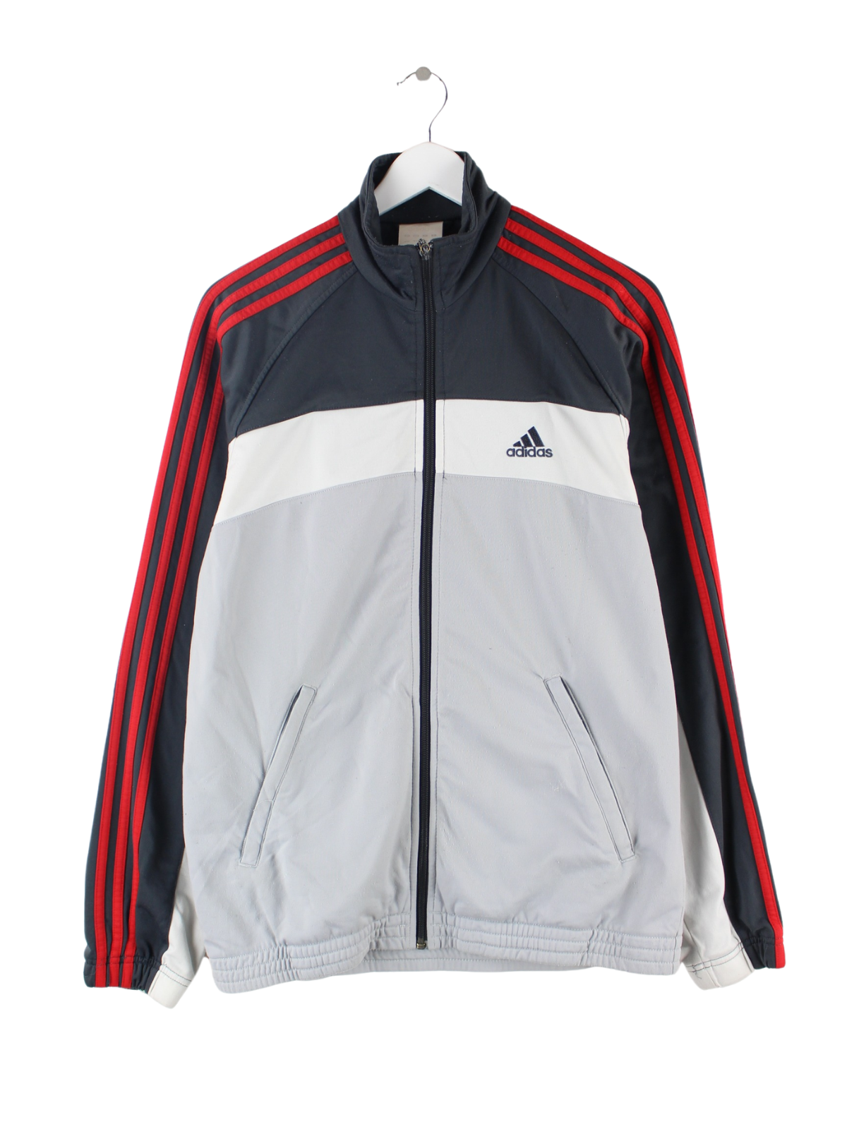 Trainingsjacke der Marke Adidas in Größe L. Sie ist aus Synthetik und in Grau vorrätig.