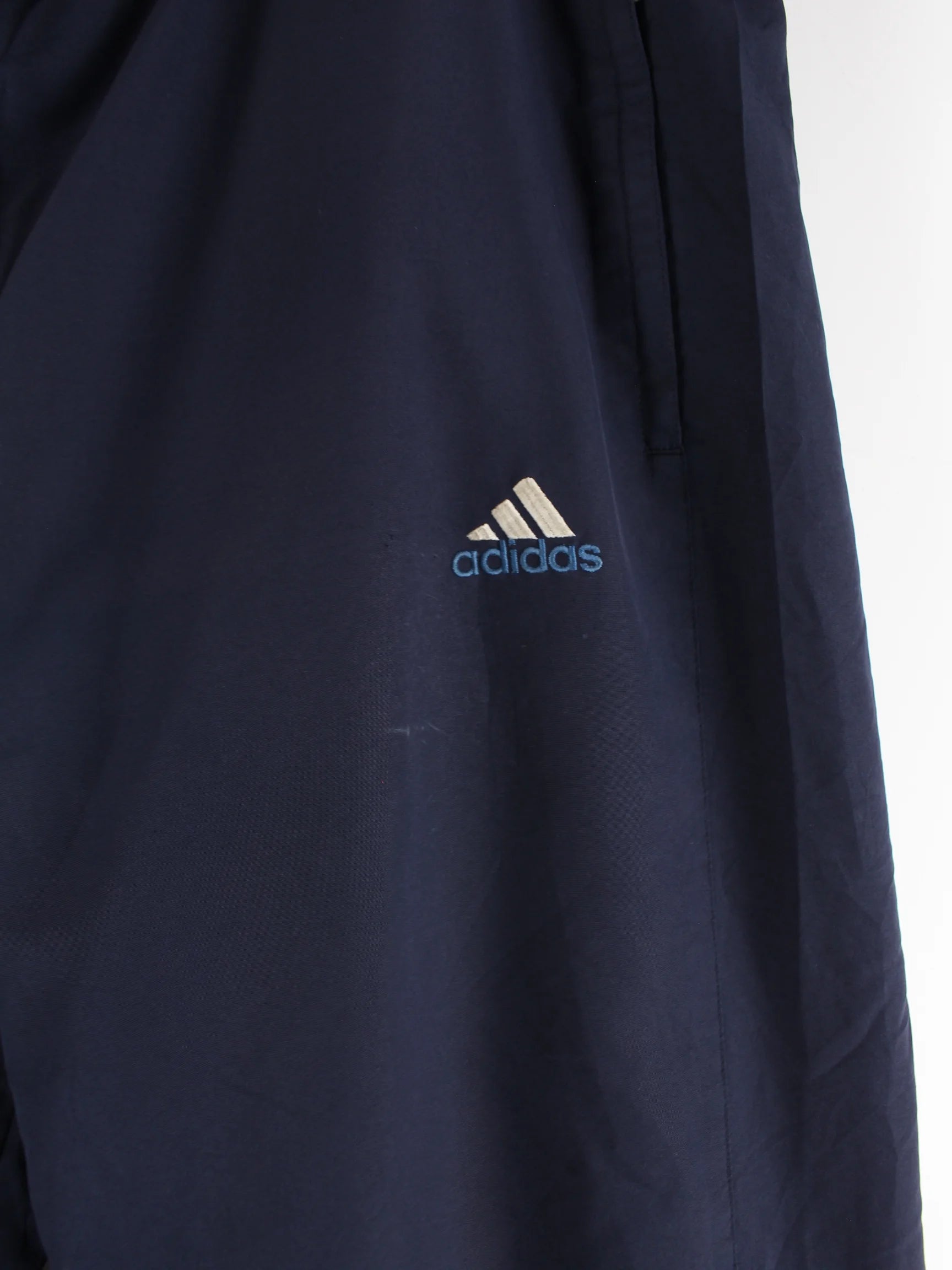 Blaue Track Pants vom Brand Adidas in Größe L. Sie sind aus Synthetik gemacht und in sehr gutem Zustand bei uns zu bekommen.