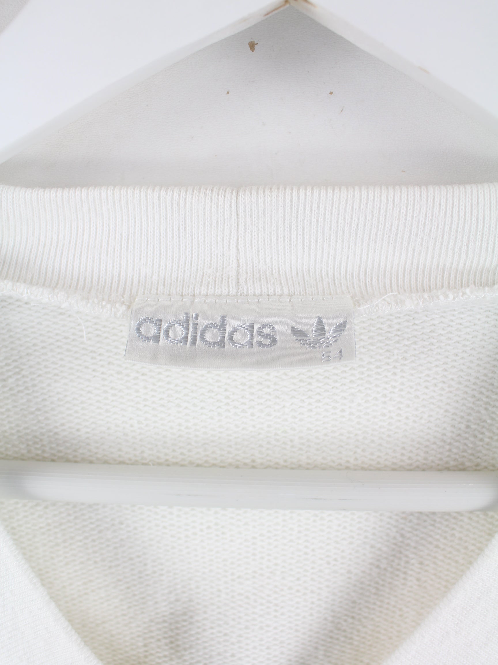 Sweater des Labels Adidas in Größe S aus den 80'ern. Er ist aus einer Baumwollmischung und in Weiß bei uns zu bekommen. Mit seltenem Vintage Print.
