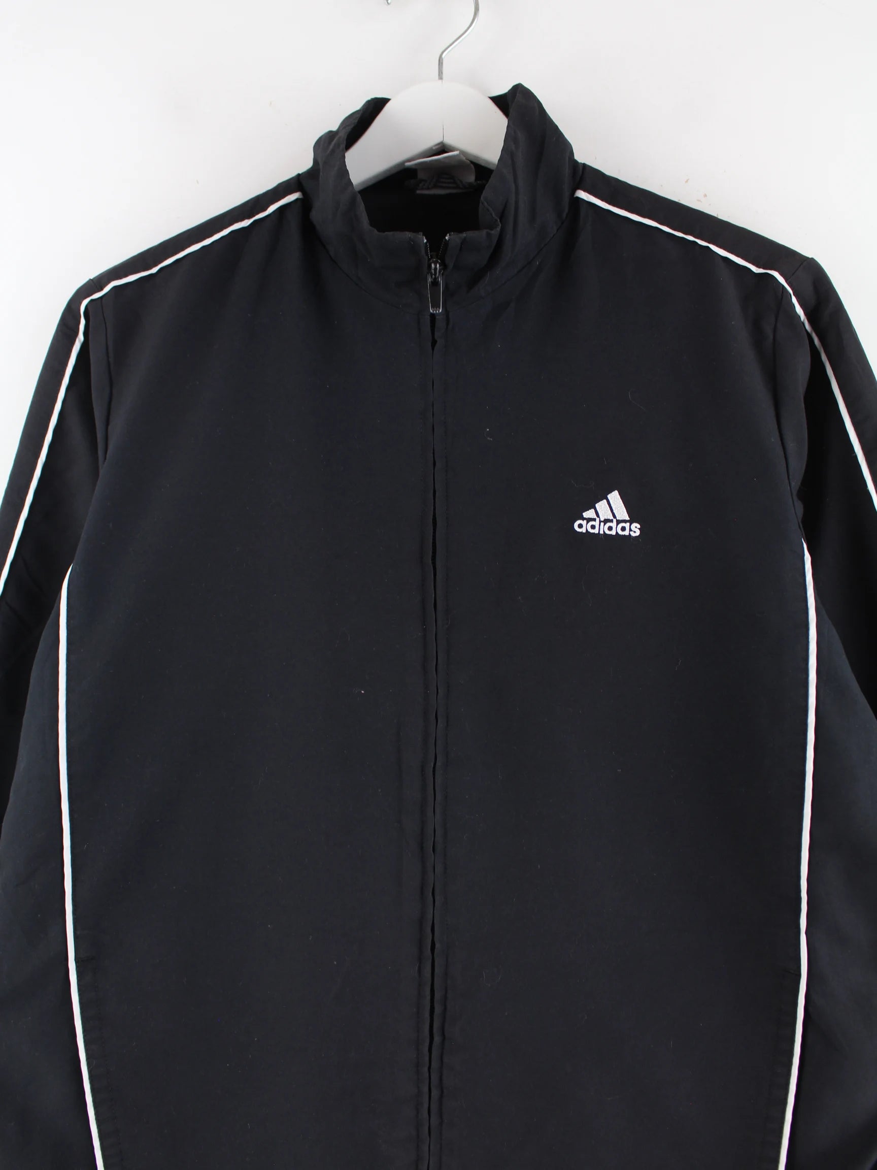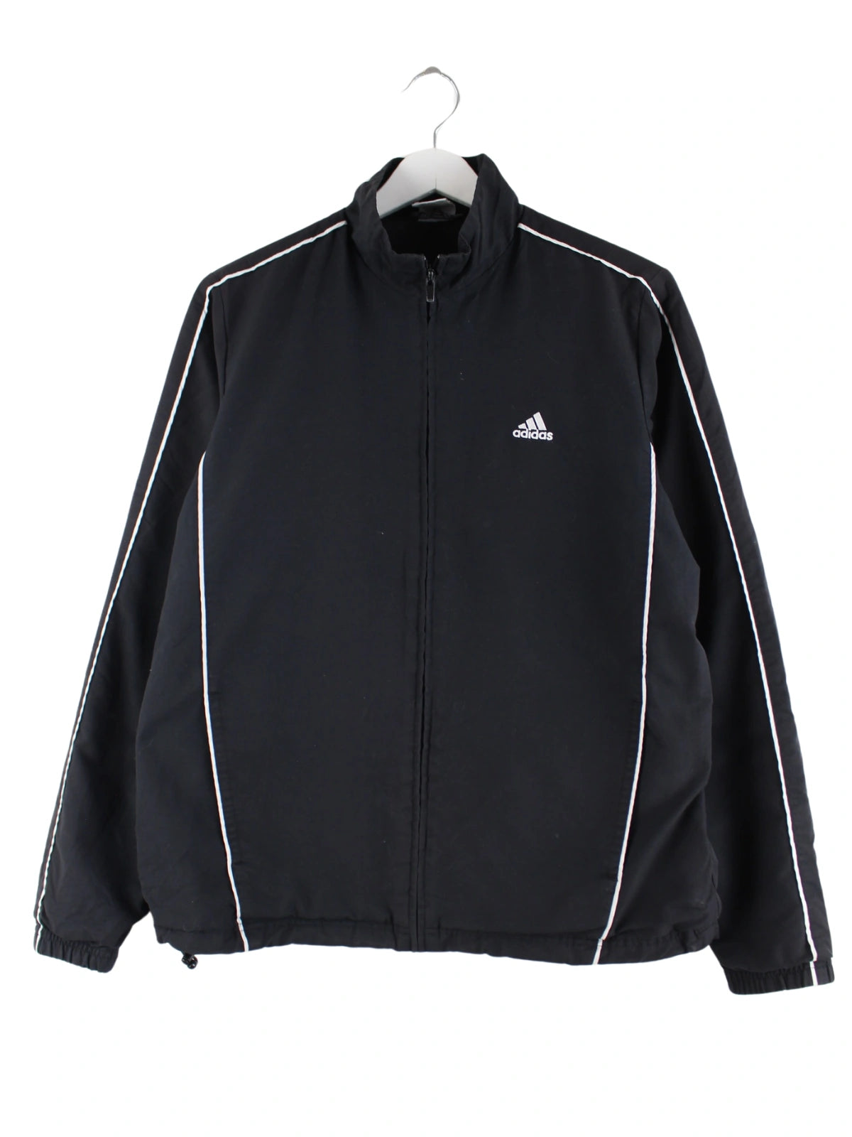 Trainingsjacke der Brand Adidas in Größe M. Sie ist aus Synthetik gefertigt und in Schwarz zu bekommen.